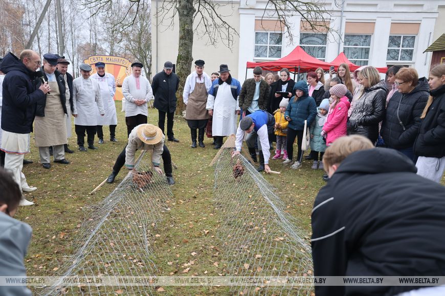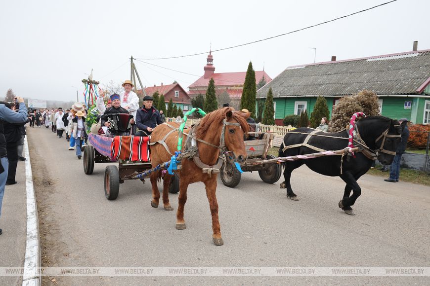 По традиции праздник начался с театрализованного шествия, возглавили которое две лошадиные повозки. Так был дан старт самобытному, веселому и ароматному событию. На празднике, как и веками ранее, можно попробовать традиционные блюда белорусской кухни, приготовленные по старинным рецептам. Выбирают на празднике и лучшего мельника региона.