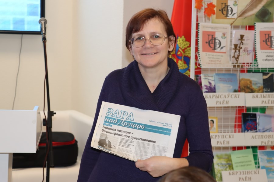 Дырэктар установы Наталля Маеўская пазнаёміла прысутных з формамі нагляднай рэкламы і прапаганды, сервіснымі паслугамі для чытачоў, з мастацкай эстэтыкай інтэр’ера, інфармацыйнамі магчымасцямі і багаццем кніжнага фонда. Цікавай была і экскурсія ў інфармацыйна-краязнаўчым цэнтры бібліятэкі.