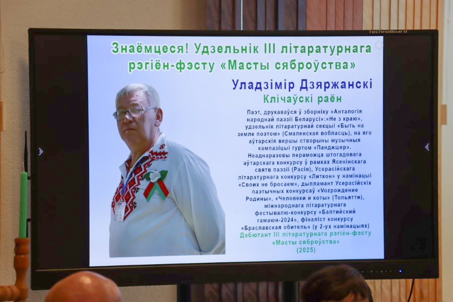 Выдатна дэбютаваў на фэсце прадстаўнік Клічаўскага раёна Уладзімір Дзяржанскі, які прэзентаваў не толькі нізку сваіх вершаў, але і кранальную песенную кампазіцыю на свой верш – прызнанне ў любові роднаму гораду з відэасуправаджэннем.