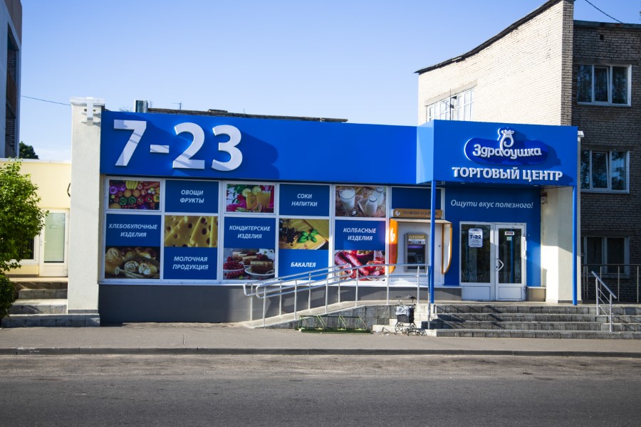 Первым серьезным клиентом для компании стал ТУП «Здравтрейд», который заказал изготовление вывесок для всех фирменных магазинов, расположенных в Березино, Крупках и Борисове. Предложение было неожиданным, но за него они охотно взялись. Далее последовал заказ на оклейку переездных торговых павильонов, а затем на комплексное оформление фасада торгового центра «Здравушка».