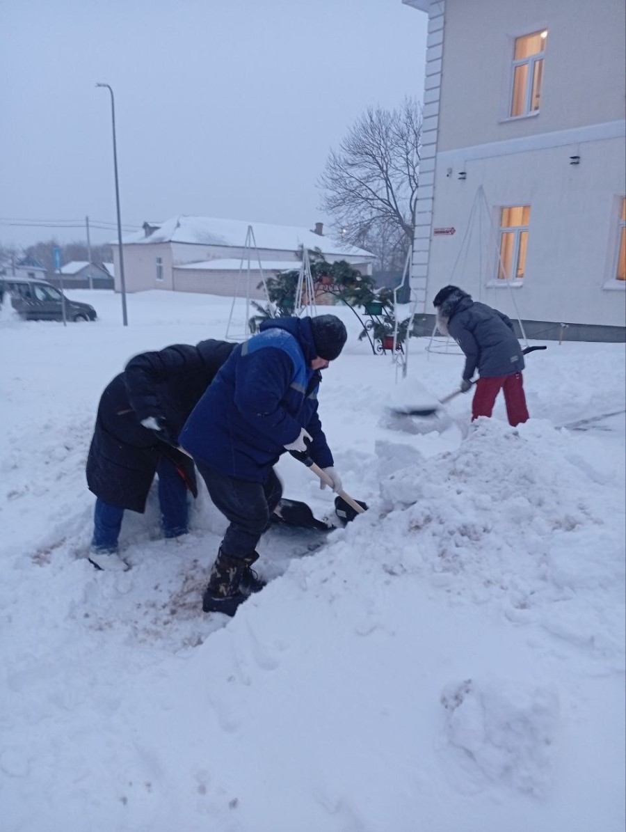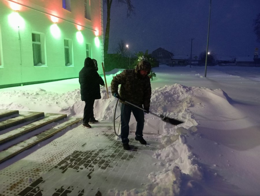 В том числе работники Березинкого районного центра культуры и Березинской библиотеки участвуют в уборке снега.