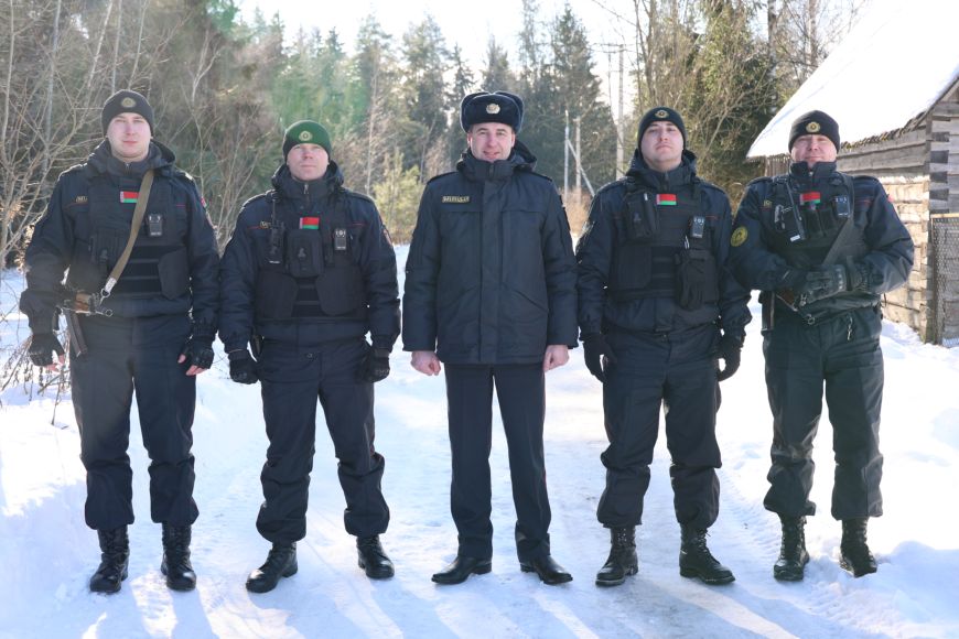 На фото слева на право: Владислав Дорофеев, Юрий Шутько, начальник Жодинского отдела Департамента охраны МВД Максим Максимович, Андрей Буров, Евгений Савич