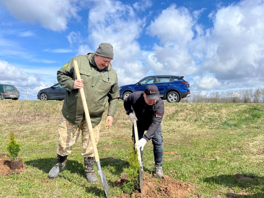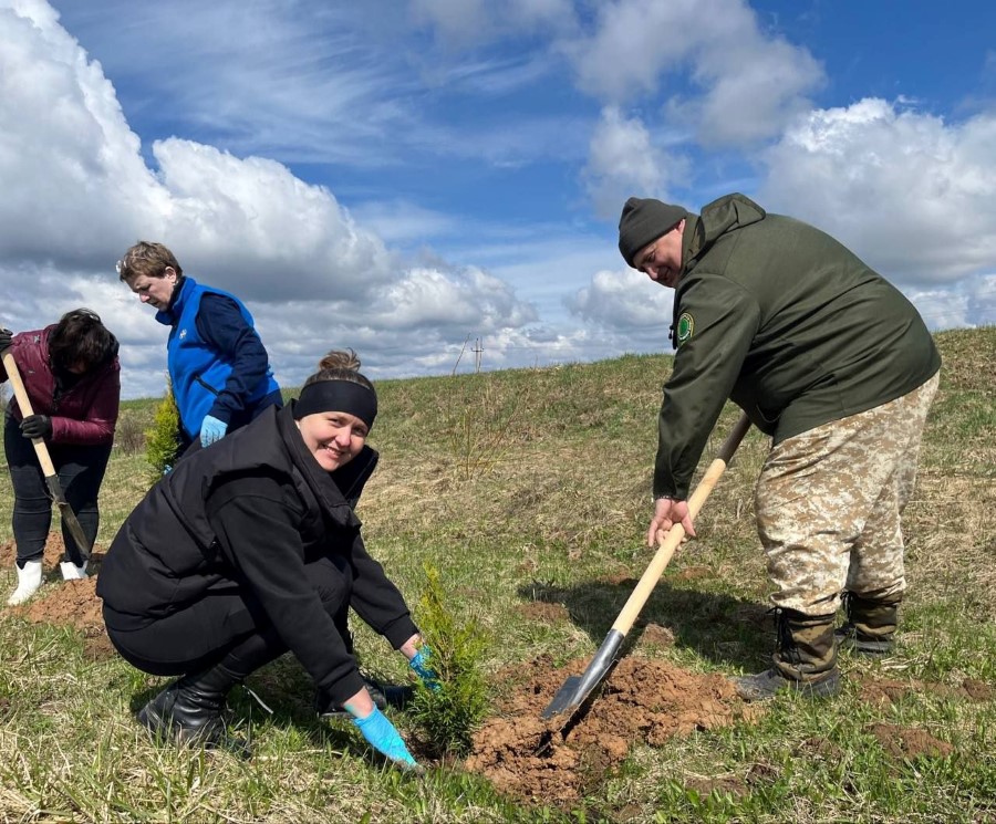 Завершился субботник посадкой туй в Косовке, недалеко от спортивной площадки.