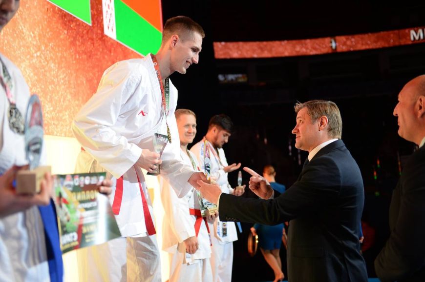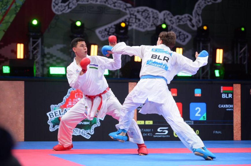Победителями домашнего турнира среди юниоров стали Милана Асташонок (до 48 кг), Вероника Жамайтук (до 66 кг), Денис Борисенко (ката), Егор Копаница (до 55 кг), Василий Дмитрук (до 61 кг), Артем Козел (до 76 кг) и Богдан Балук (свыше 76 кг). Еще два золота белорусы взяли в командном ката. Также на верхнюю ступень пьедестала в субботу поднимались каратисты из России и Узбекистана. В заключительный день на Belarus Open в Минске выступят представители младших возрастных групп - до 11, 13 и 15 лет.