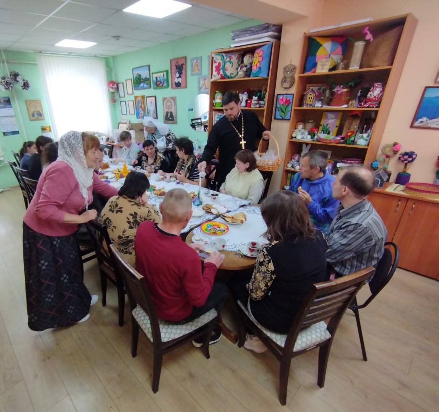 После всех ждало чаепитие с пасхальными угощениями и дружеская беседа. Атмосфера тепла и доброты царила в зале, напоминая о главных ценностях Пасхи – любви, милосердии и надежде.