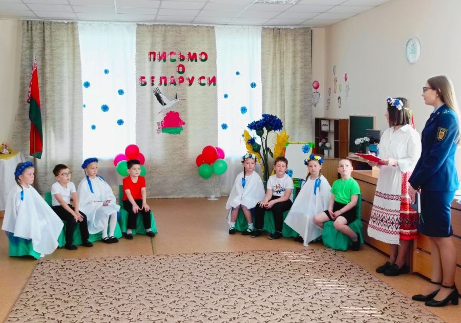 С целью воспитания чувства патриотизма, любви к Родине в ГУО "Детский сад №5 г. Березино" прошло гражданско-патриотическое мероприятие "Письмо о Беларуси" с участием старшего помощника прокурора Маслаковой Вероники Анатольевны.