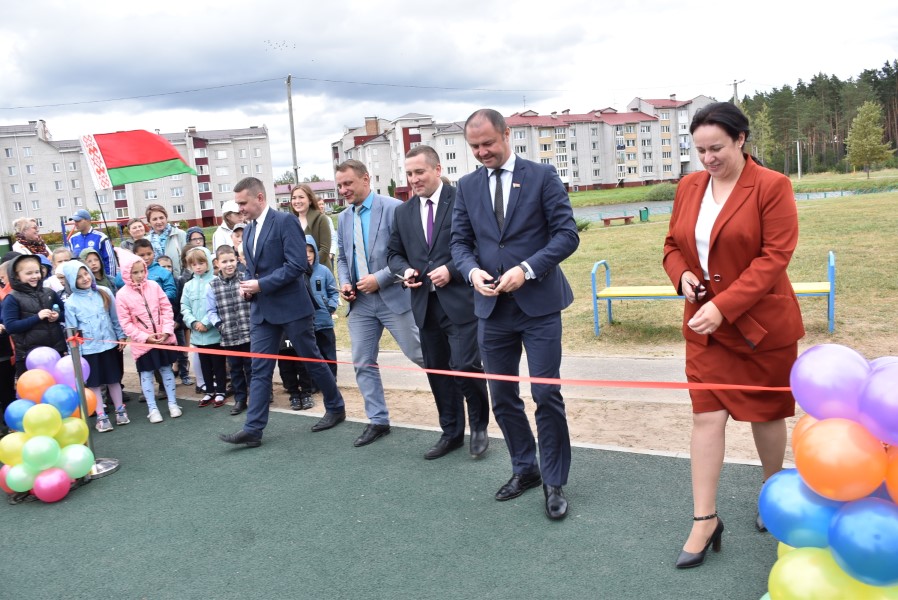 В открытии площадки принимали участие председатель Березинского райисполкома Денис Дишук, заместитель начальника главного управления спорта и туризма Миноблисполкома Владимир Губаревич, начальник управления по образованию, спорту и туризму Алеся Титова, директор ДРСУ-192 Алексей Книга.