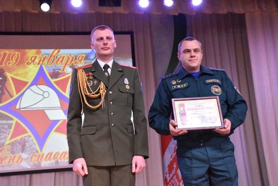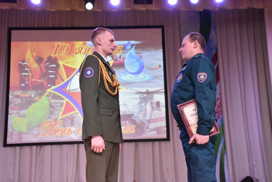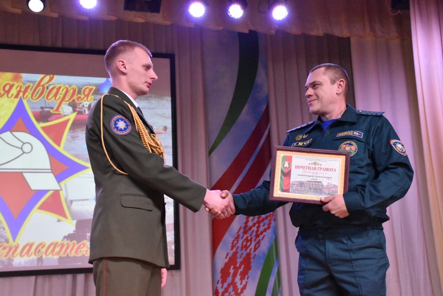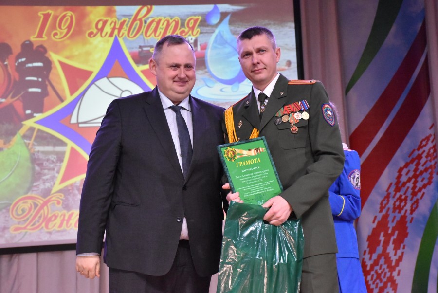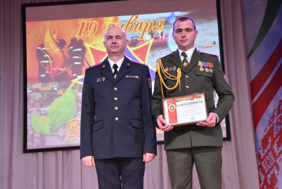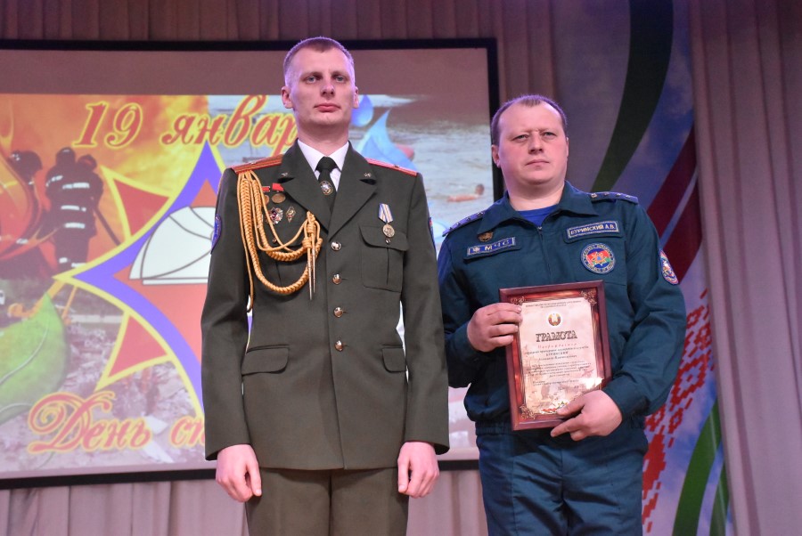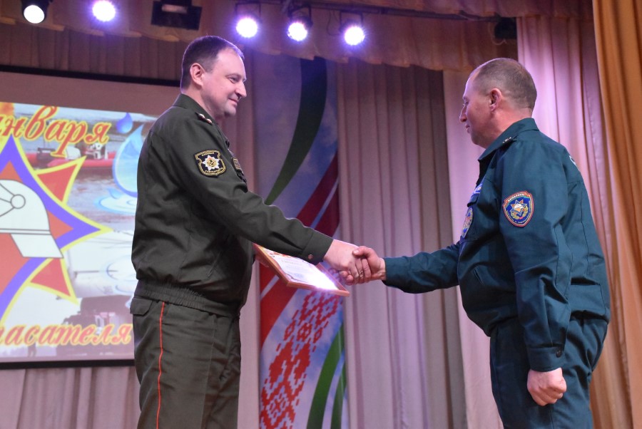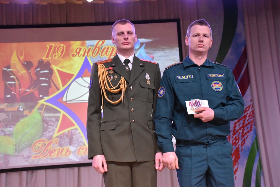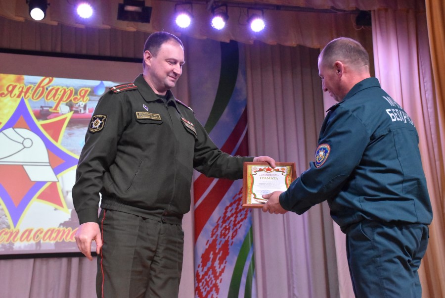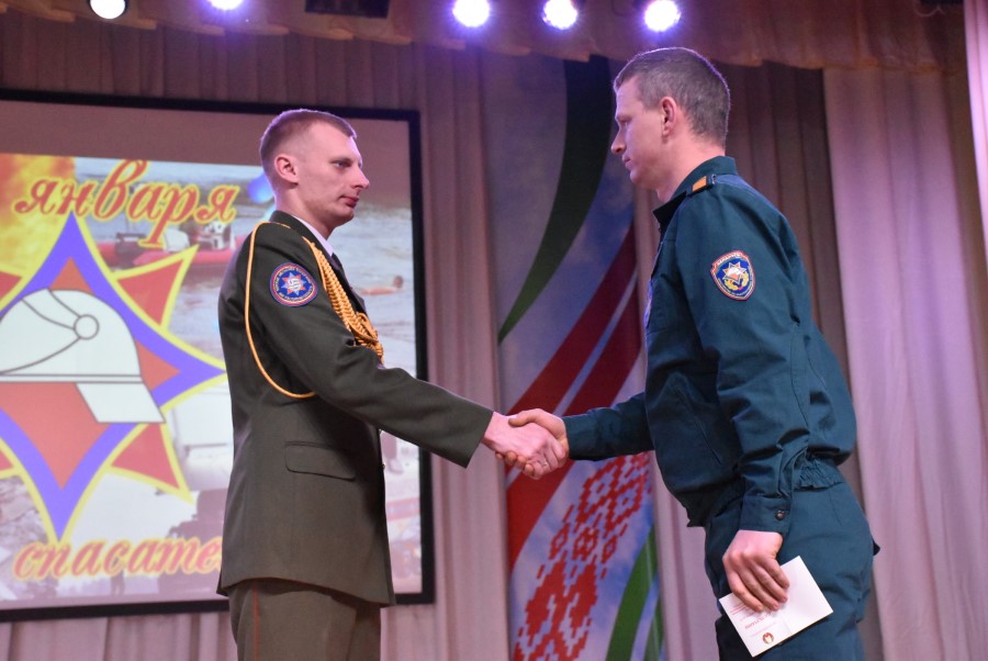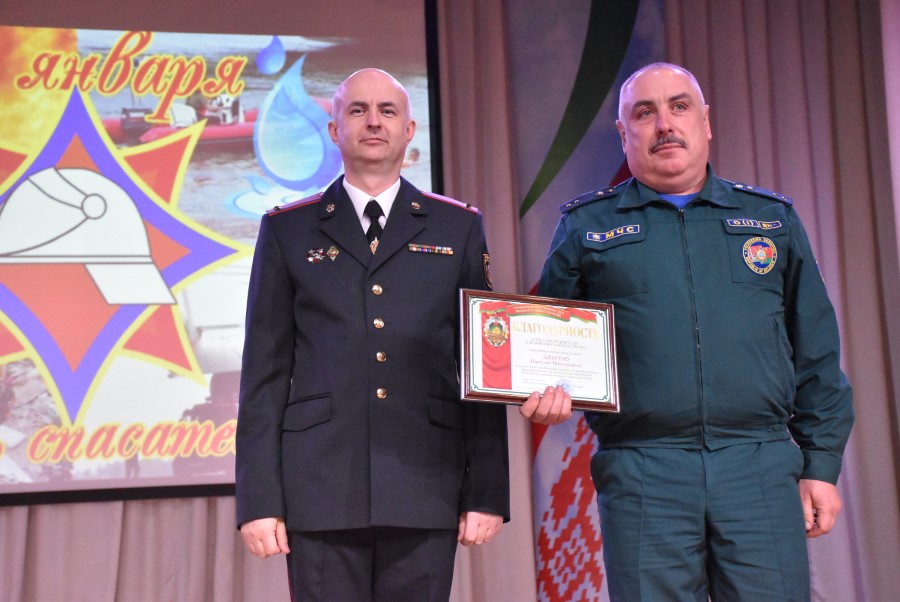 Напачатку начальнік РАНС Іван Мазанік расказаў пра вынікі работы райаддзела за мінулы год. І першым павіншаваў прысутных. Ен уручыў сваім супрацоўнікам Ганаровыя Граматы Міністэрства па надзвычайных сітуацыях.