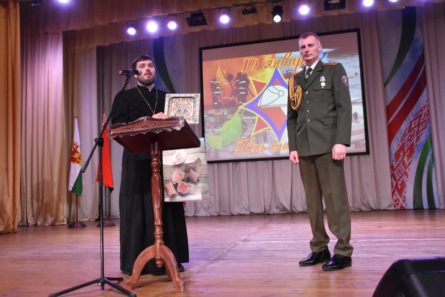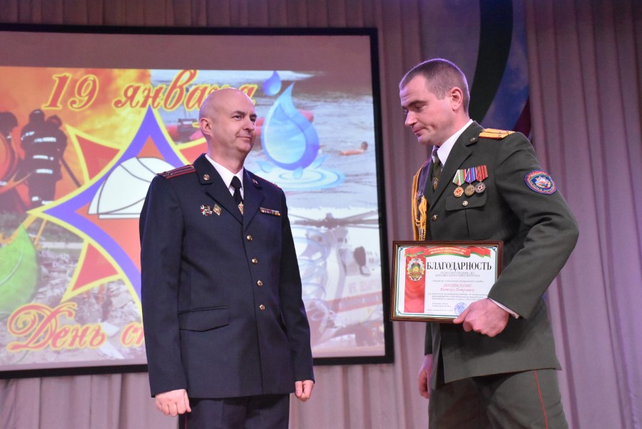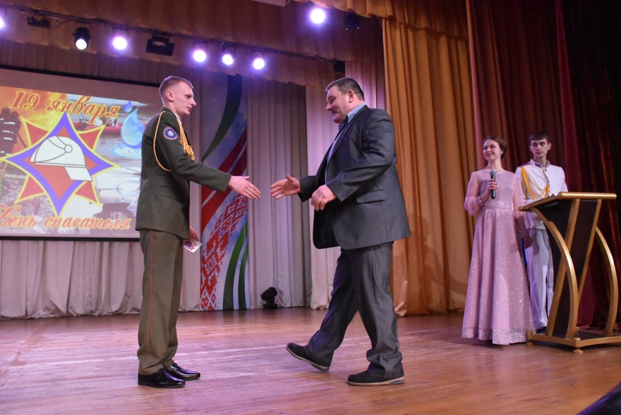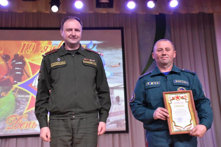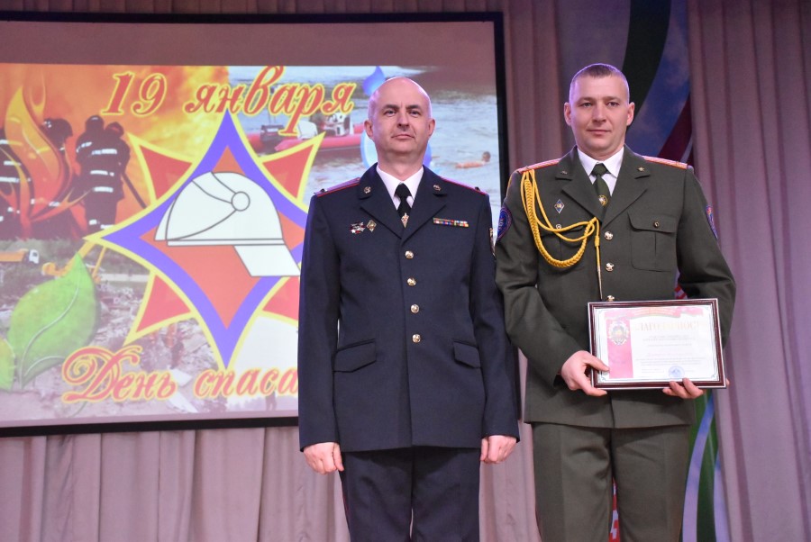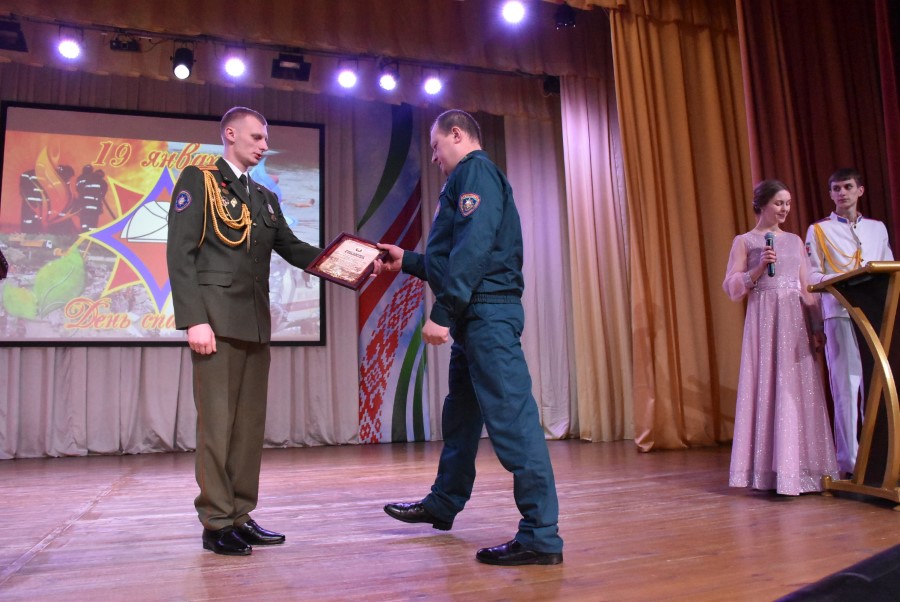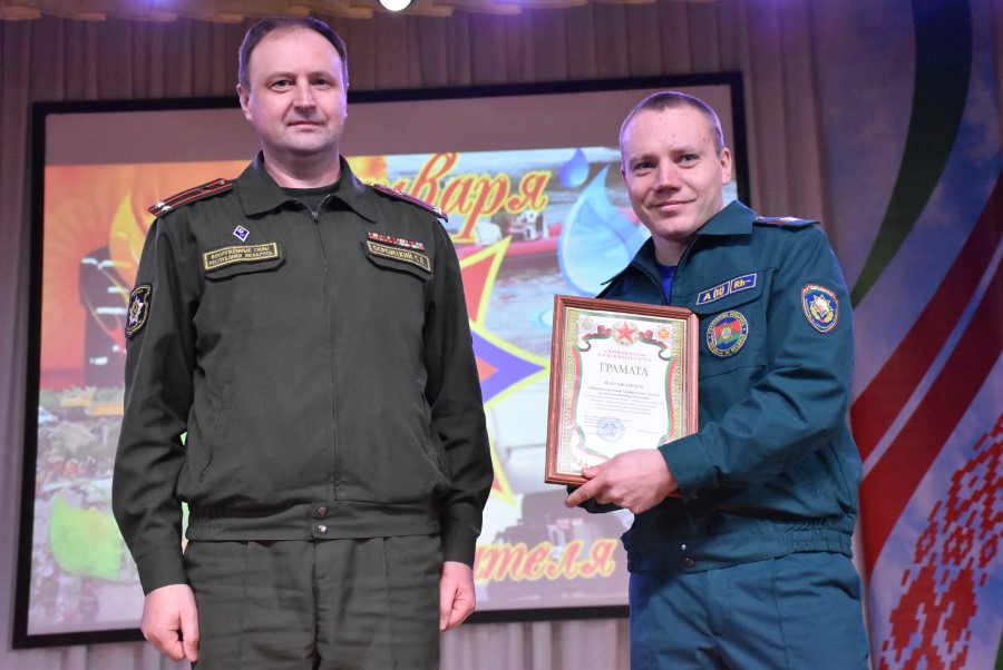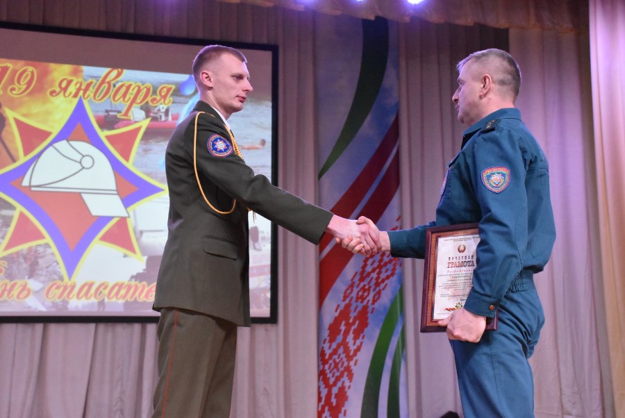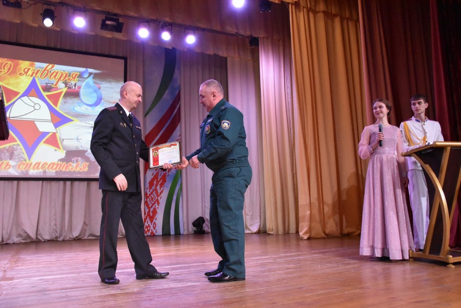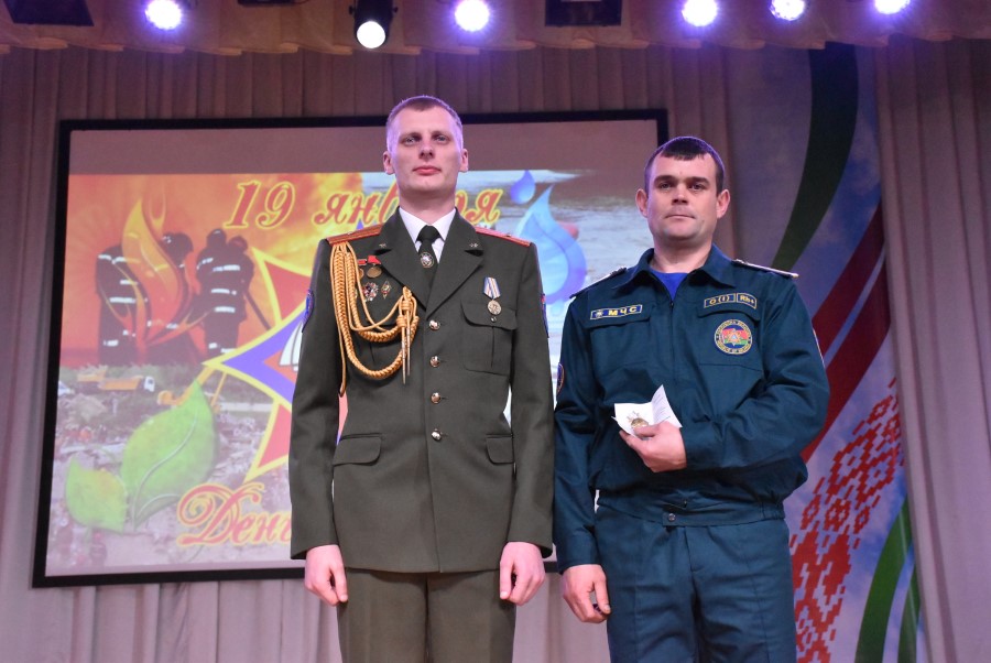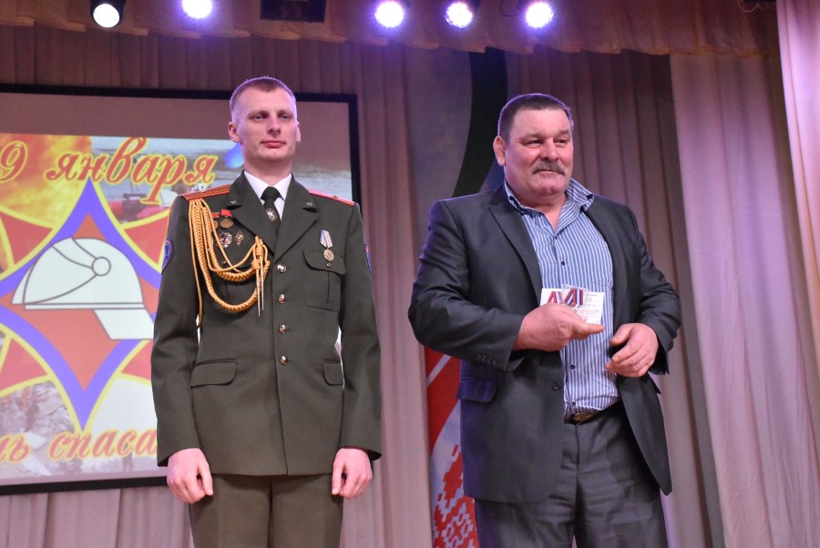 Напачатку начальнік РАНС Іван Мазанік расказаў пра вынікі работы райаддзела за мінулы год. І першым павіншаваў прысутных. Ен уручыў сваім супрацоўнікам Ганаровыя Граматы Міністэрства па надзвычайных сітуацыях.