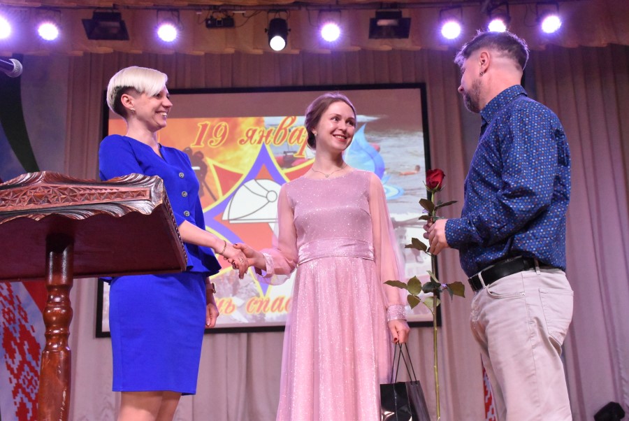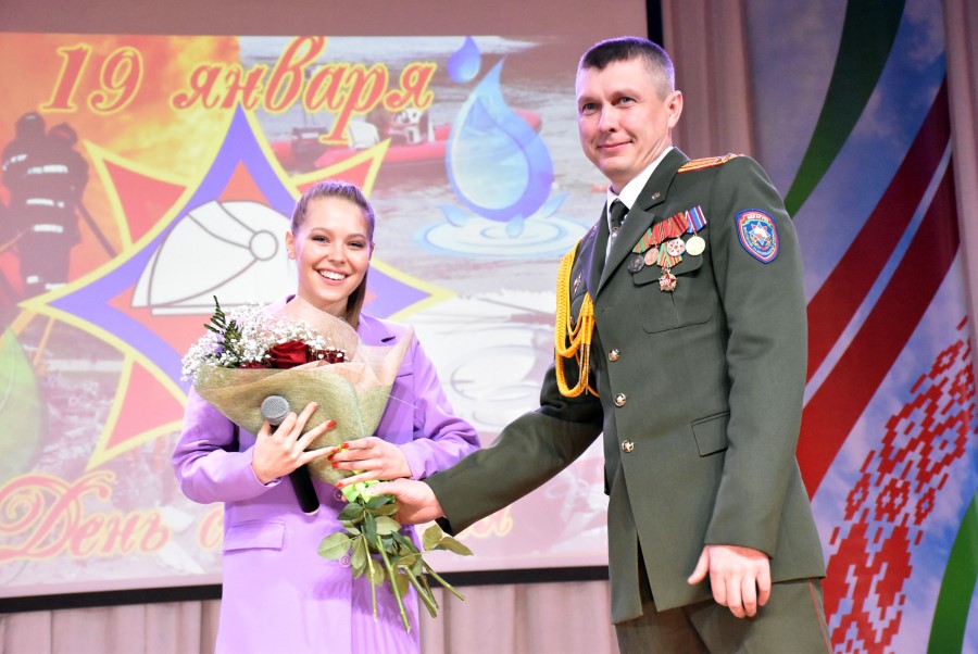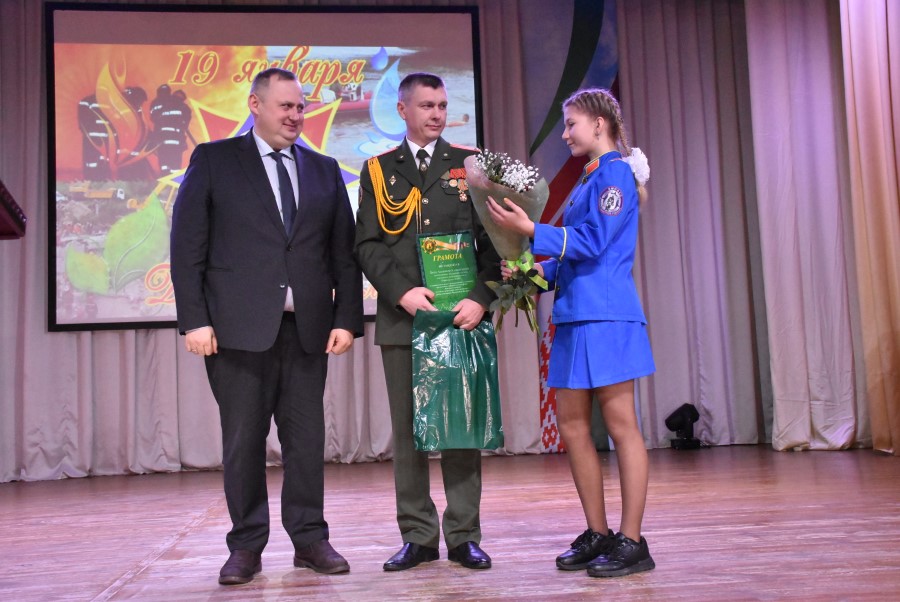 Затым эстафету віншаванняў у гонар прафесійнага свята працягнулі мастацкія нумары актывістаў клуба юных выратавальнікаў пажарных “Сірэна” і артыстаў раённага цэнтра культуры.