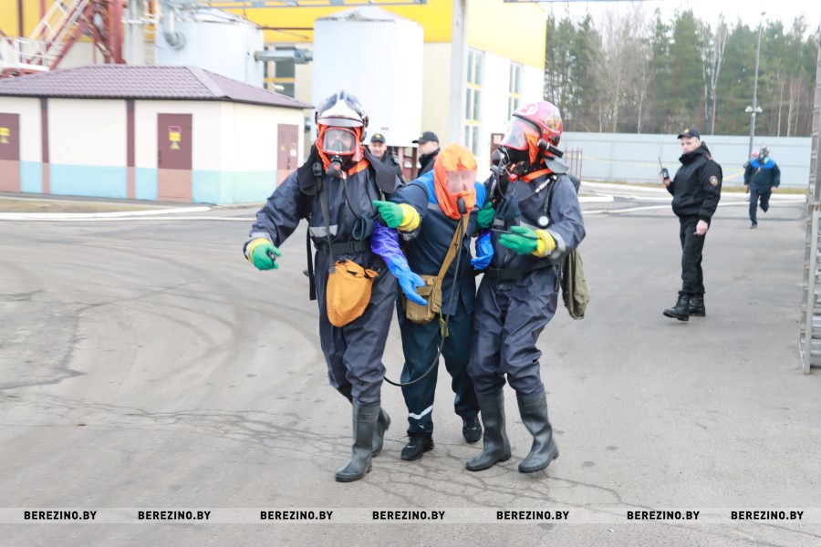 Пункты плана необходимых операций для спасения людей и ликвидации аварии включали: оказание первой медицинской помощи пострадавшим, осаждение облака аммиака, приведение в готовность противорадиационного укрытия. Представителям МЧС и Березинского райисполкома была также продемонстрирована работа звена по обслуживанию пункта противорадиационной защиты и пункта выдачи средств индивидуальной защиты.