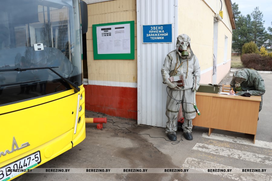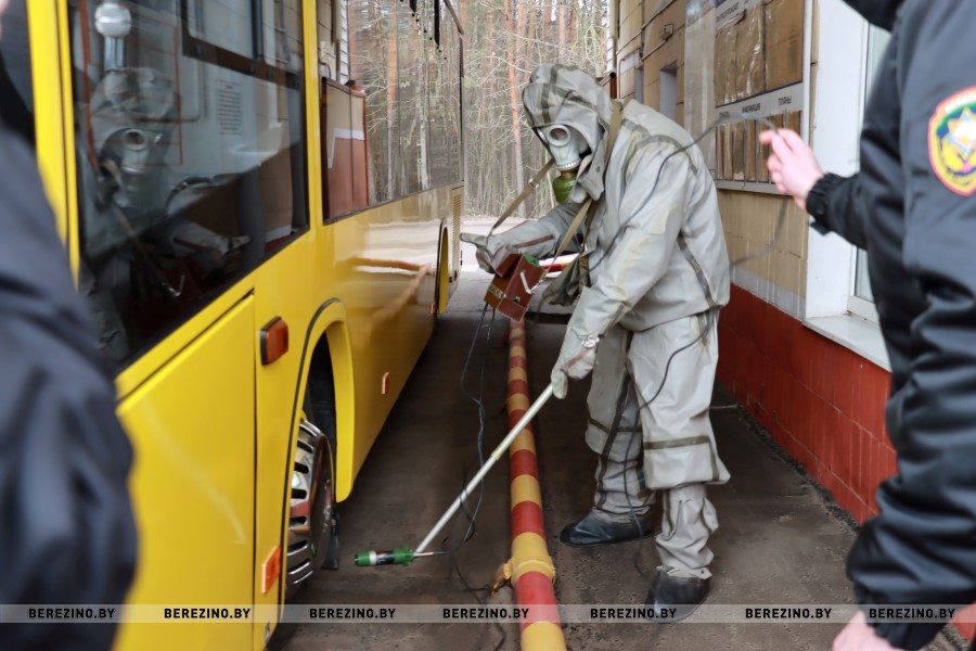 Далее в плане сегодняшнего дня учений его участники посетили КУП «Березинское РКБО», городскую баню (объект РКУПП «Березинское ЖКХ»), филиал «Автопарк №22», в которых проверили разворачивание станции обеззараживания одежды, пункта вещевого снабжения и санитарно-обмывочного пункта станции обеззараживания транспорта.