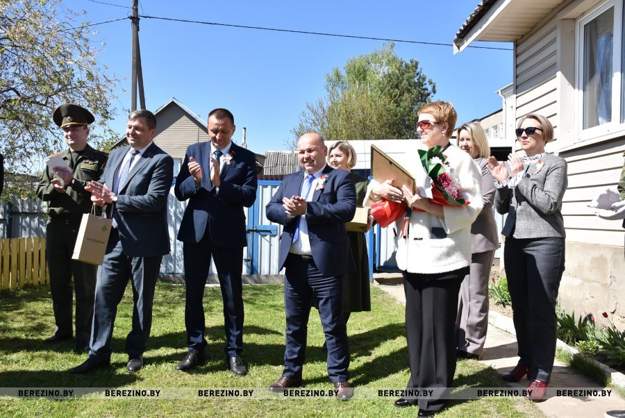 С открыткой от Главы государства, оригинальными подарками, большим букетом цветов, Почетной грамотой заглянули к Софии Петровне председатель Березинского райисполкома Андрей Соколовский, председатель районного Совета депутатов Владимир Трухан, депутат Палаты представителей Национального собрания Республики Беларусь Юрий Корсик, заместитель председателя Ольга Колячко, военный комиссар Червенского и Березинского района Александр Кахнович молодежь, члены клуба «Феникс».
