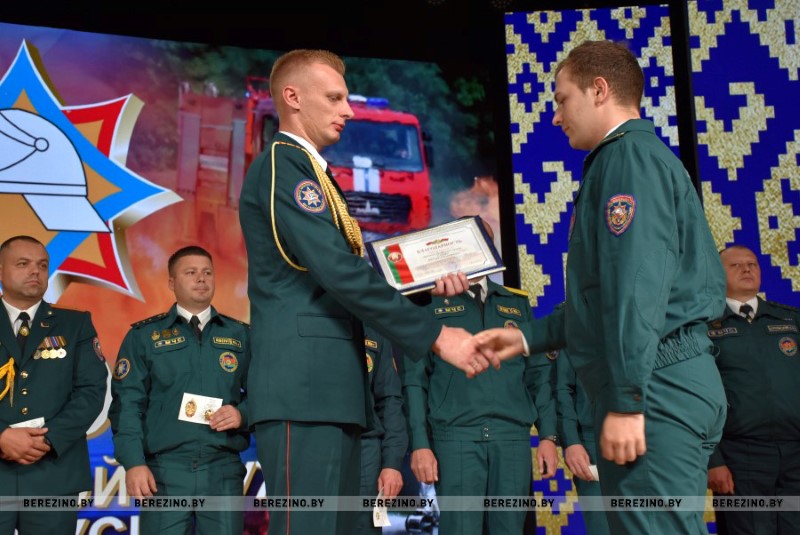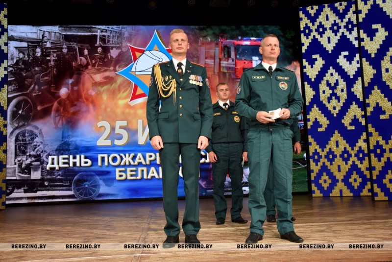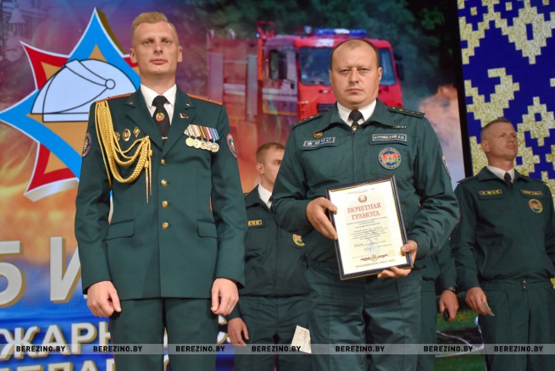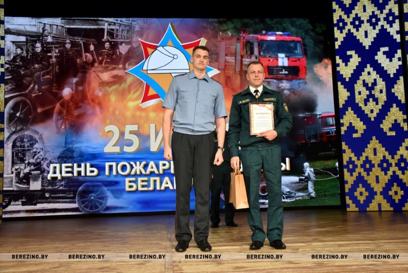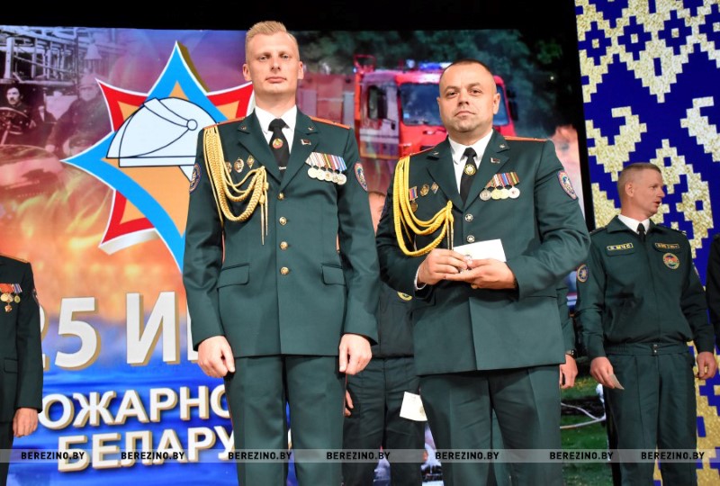 Этим же приказом награждены нагрудным знаком МЧС «Выдатнік” прапорщик внутренней службы Дмитрий Пенкрат и старший инструктор ПАСП №12, прапорщик внутренней службы Александр Свиридович, водитель ПАСП №11. Почетной грамотой МЧС Республики Беларусь награжден старший прапорщик внутренней службы Александр Буримский – старший инструктор-спасатель ПАСЧ №11. Юбилейной медалью органов и подразделений, подчиненных МЧС «170 год пажарнай службе» отмечен подполковник внутренней службы Александр Лагун – заместитель начальника отдела по чрезвычайным ситуациям. Памятный нагрудный знак органов и подразделений МЧС «165 год пажарнай службе» вручен майору внутренней службы Дмитрию Анципову – первому заместителю начальника Березинского РОЧС, майору внутренней службы Константину Богачу – старшему инспектору отдела надзора и профилактики РОЧС, лейтенанту внутренней службы Никите Булойчику –начальнику дежурной смены ПАСЧ №1, старшему прапорщику внутренней службы Александру Войтеховичу – старшему инструктору-спасателю ПАСП №11, старшине внутренней службы Сергею Романовскому – старшему инструктору-спасателю ПАСЧ №1. Также объявлена благодарность начальника учреждения «Минское областное управление МЧС» сержанту внутренней службы Максиму Сакову – мастеру-спасателю ПАСЧ №1, сержанту внутренней службы Петру Шкатуло – водителю ПАСЧ №1.
