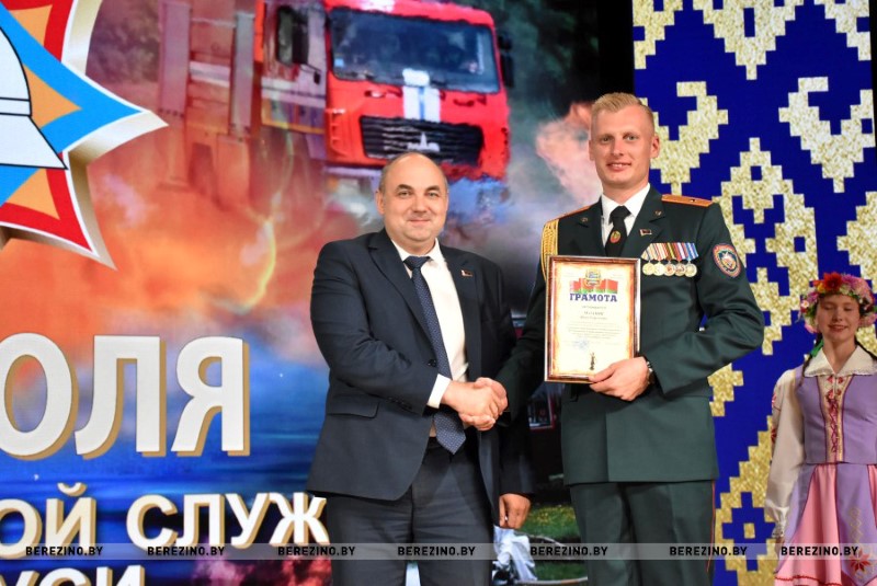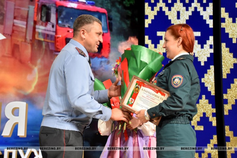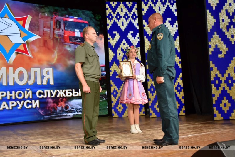 Ряд гостей праздника был отмечен благодарностью районного отдела по чрезвычайным ситуациям. Среди них – ветераны пожарной службы Николай Андриевич, Юрий Альфер и Наталия Синкевич, а также члены клуба юных спасателей-пожарных “Сирена” Валерия Шмарловская, Василий Коленкович, Анастасия Ермолович, Глеб Тимошенко и Кира Стрижень. За плодотворную связь с органами МЧС грамотой учреждения “Минское областное управление МЧС” кроме того была отмечена главный бухгалтер районного комитета БРСМ Оксана Соболь. За активное взаимодействие с Березинским РОЧС и проявление творческой инициативы отмечена София Кушнер, отец которой, кстати, много лет отдал службе спасения.