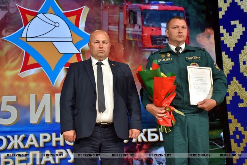 Иван Мазаник также был отмечен грамотой, которую ему вручил председатель Березинского суда Алексей Кропачев. А вот старшему прапорщику внутренней службы Дмитрию Григоровичу – водителю ПАСЧ №1, старшему прапорщику внутренней службы Евгению Сигуеву – старшему инструктору-спасателю ПАСЧ №1 грамоты вручил начальник Березинского отделения департамента охраны Даниил Таратин. Не менее приятно было получать благодарственные письма из рук главного врача учреждения здравоохранения “Березинская ЦРБ” Кристину Крук начальнику РОЧС Ивану Мазанику, майору внутренней службы Констанину Богачу – инспектору сектора надзора и профилактики РОЧС, старшему лейтенанту внутренней службы Алексею Кривороту – заместителю начальника РОЧС.