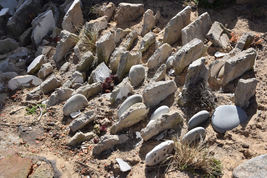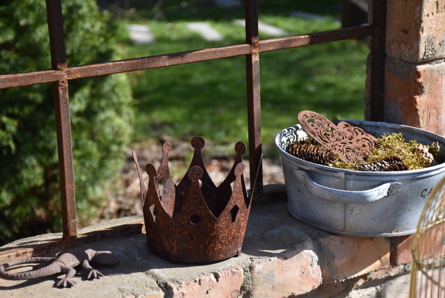– Шары я скрутила из простой проволоки, – говорит Елена Николаевна, – они получились вот с таким рисунком. А вот эти шары вдоль огородика сделаны из виноградной лозы. Всё очень сочетается и смотрится оригинально. Многим интересны фигурки, для создания которых используют ветки, брёвнышки, камни, коряги и другие природные элементы. Они могут быть как абстрактными, так и в виде животных, людей или сказочных персонажей.