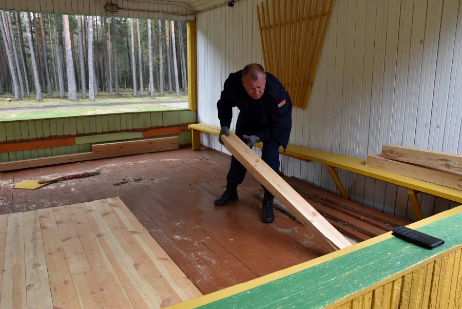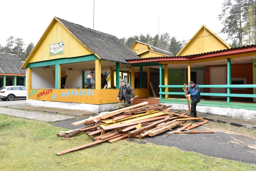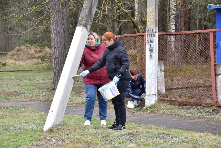 Вовсю кипела работа в оздоровительном детском летнем лагере «Папараць-кветка». Здесь трудились представители сферы образования и Березинской прокуратуры. Объём работ по всему лагерю впечатлял: затронули и тему озеленения, и уборки, и многое другое. Десант педагогов, учителей, работников административного аппарата красил, сгребал сучья, грузил мусор в погрузчик, выполнял множество других работ. И всё – с оптимистичным настроем и вдохновением.