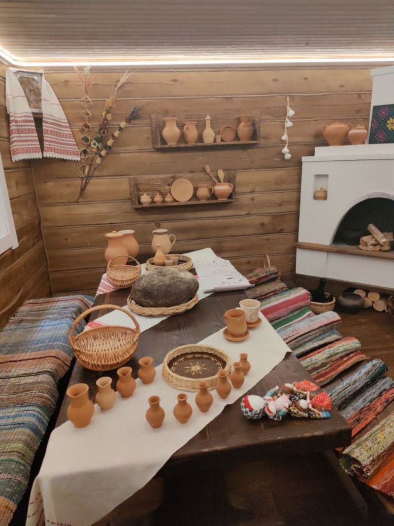 Частью экспозиции будет белорусская хата. Внутри оформлена традиционными элементами быта: ткацкий станок, столы, лавки, «люлька», элементы НКН «Маляванки», рушники, покрывала, соломенные, глиняные изделия и др. Площадка перед хатой будет оформлена также в белорусских национальных традициях, перед входом будут представлены мастер-классы с участием мастеров.