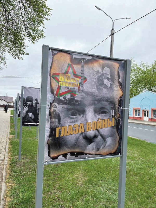 Война была со звериным оскалом смерти, не спрашивала ни возраста, ни пола, стреляла в каждого на фронте и в тылу. Помочь современникам ощутить на эмоциональном уровне весь масштаб всенародной трагедии и личного переживания призвана эксклюзивная реквием-выставка «Глаза войны», подготовленная сотрудниками ГУК «Березинская центральная районная библиотека» по архивным материалам земляков и представленная в городском сквере.