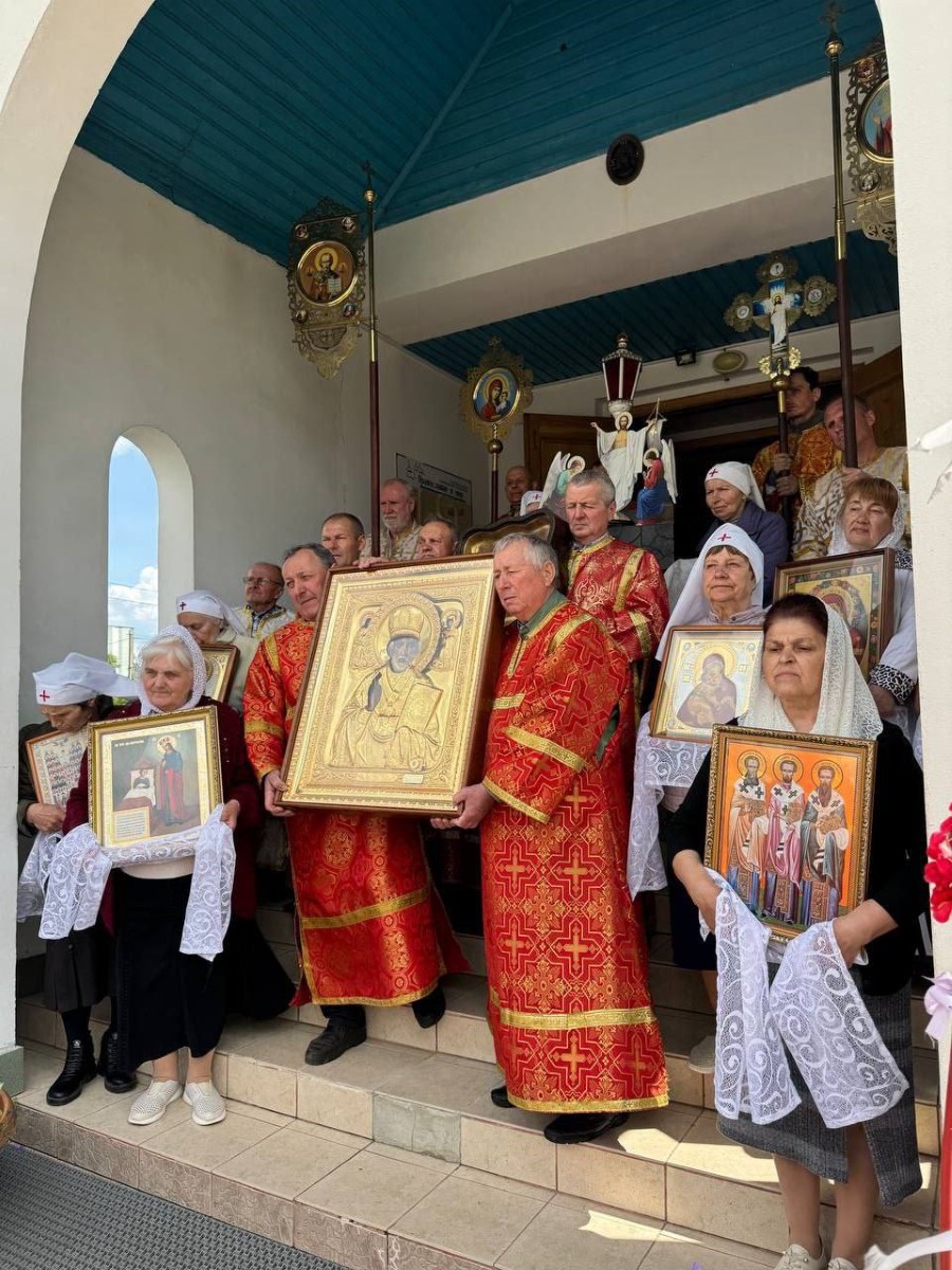 После богослужения священство благочиния, прихожане и паломники совершили Праздничный Крестный ход, который возглавил настоятель прот. Илья.