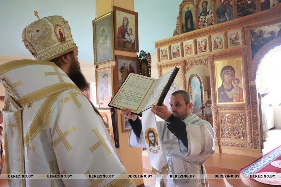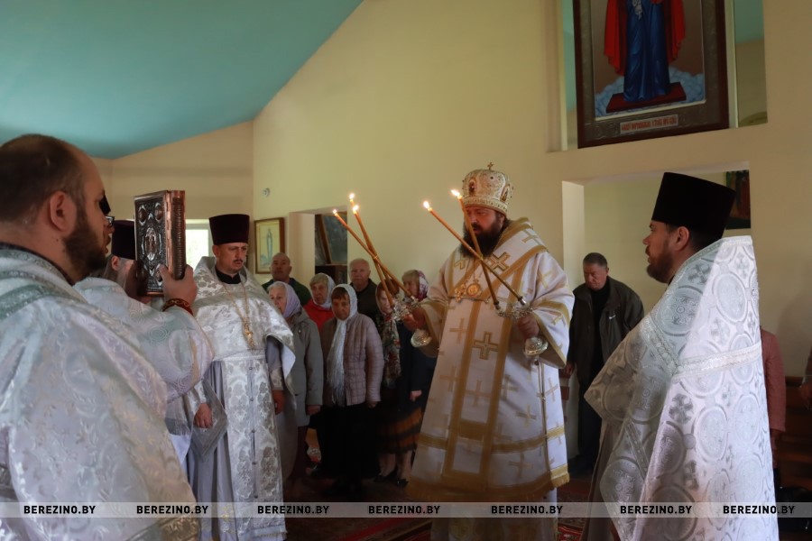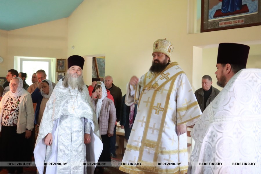 Сослужили Преосвященнейшему владыке секретарь Борисовского епархиального управления протоиерей Александр Вербило, благочинный Березинского церковного округа протоиерей Илья Гончарук, настоятель храма святого пророка Илии д. Божино иерей Валерий Юриков.