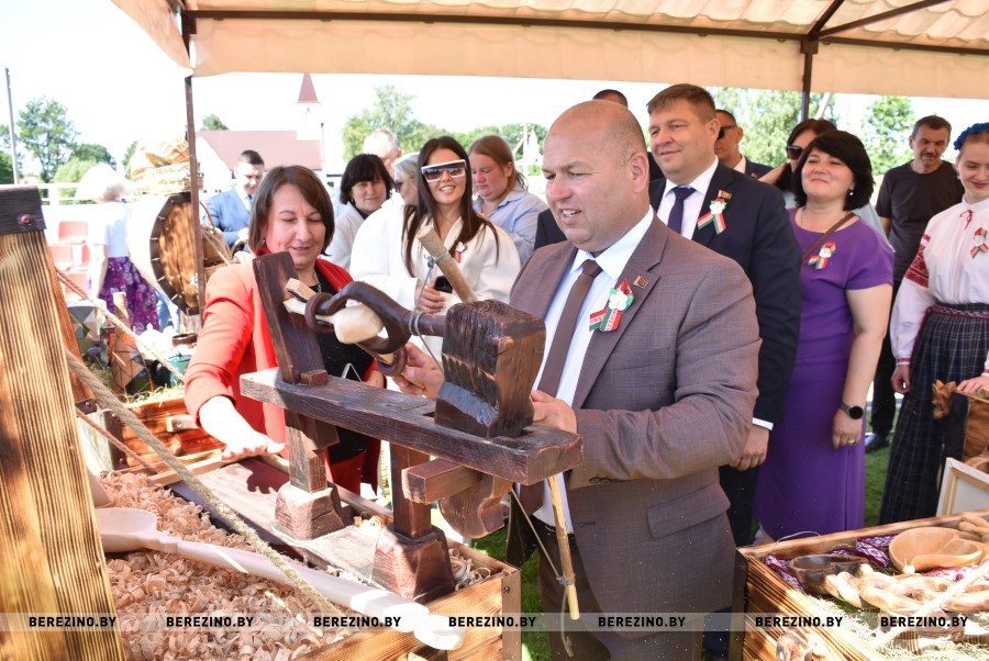 Не остались в стороне и многие другие производственные коллективы города – дорожники, мелиораторы, бытовики. Зрелищной оказалась и локация, представленная сельскими Советами Березинщины, которая состояла из трех разделов – “Мінулае. Сучаснае. Будучае”. Заливистым перезвоном колоколов приглашала к себе в гости локация Свято-Никольского храма. Как всегда было на что посмотреть и на локации районного центра ремесел. Причем здесь были представлены не только деревянные ложки – бренд нашего края, но также керамика и многие другие изделия ручной работы.