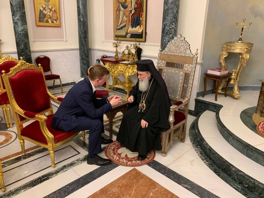 Накануне, 10 апреля, в Страстную пятницу, посла Беларуси принял Иерусалимский Патриарх Феофил III.