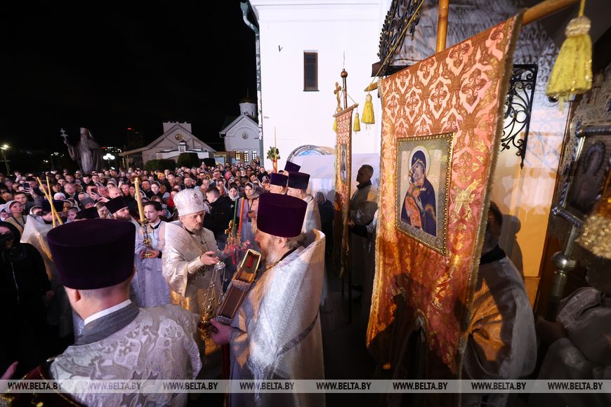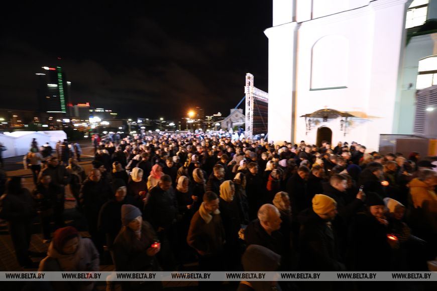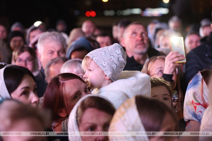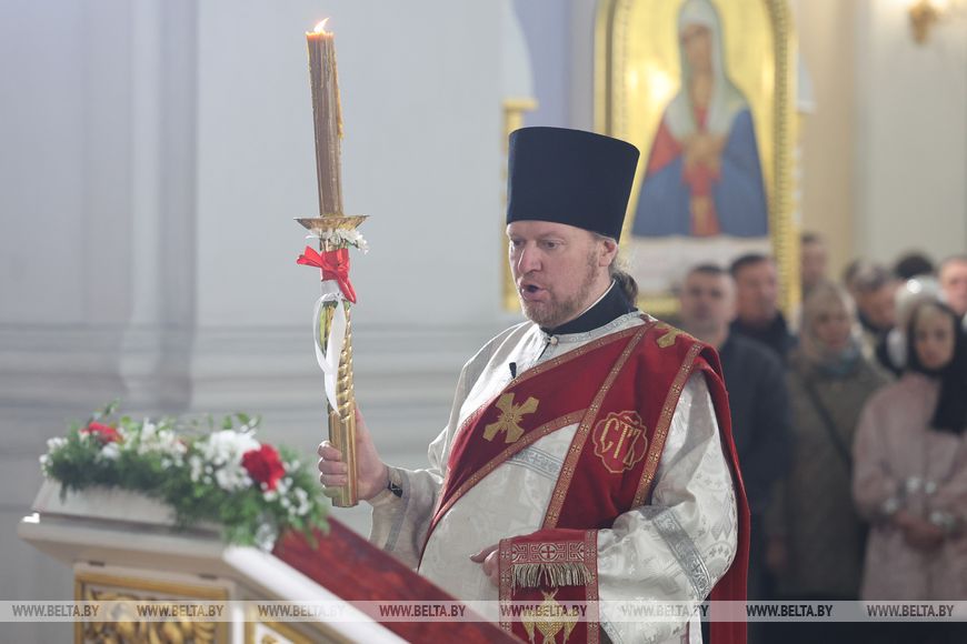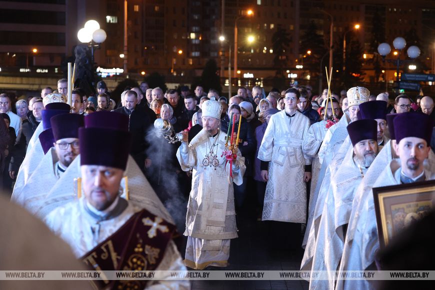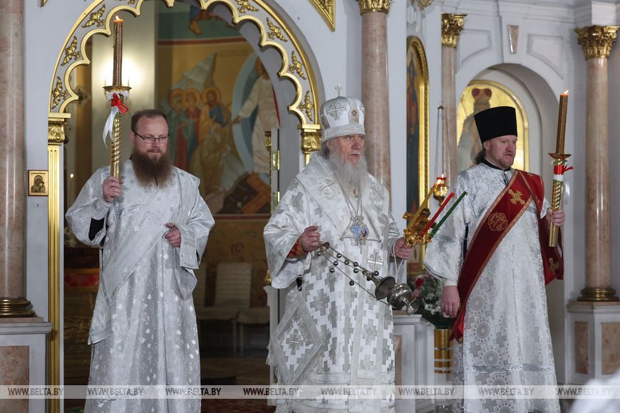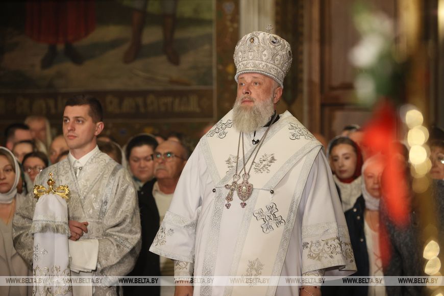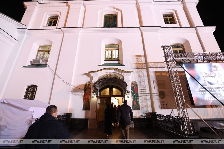 Пасхальное богослужение прошло в Свято-Духовом кафедральном соборе Минска в ночь с Великой субботы на светлое Христово Воскресение. Торжественное богослужение возглавлял Митрополит Минский и Заславский Вениамин, Патриарший Экзарх всея Беларуси.