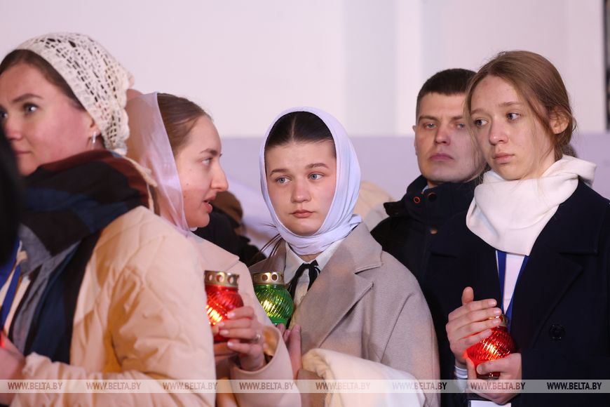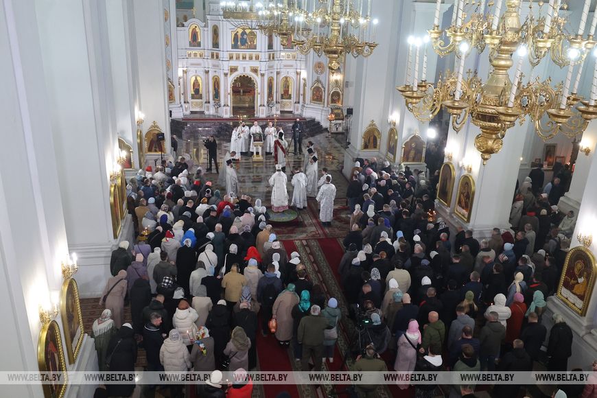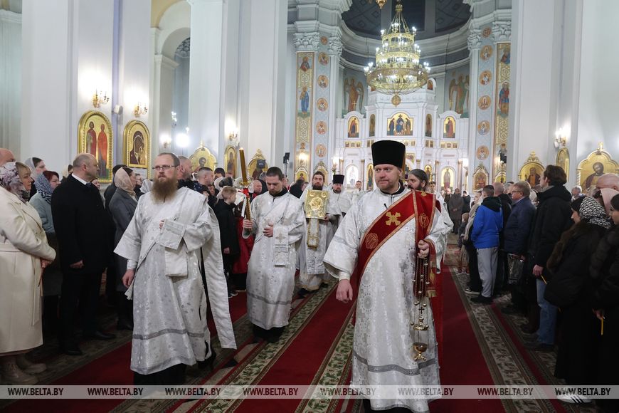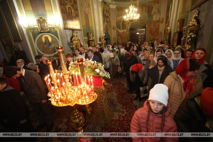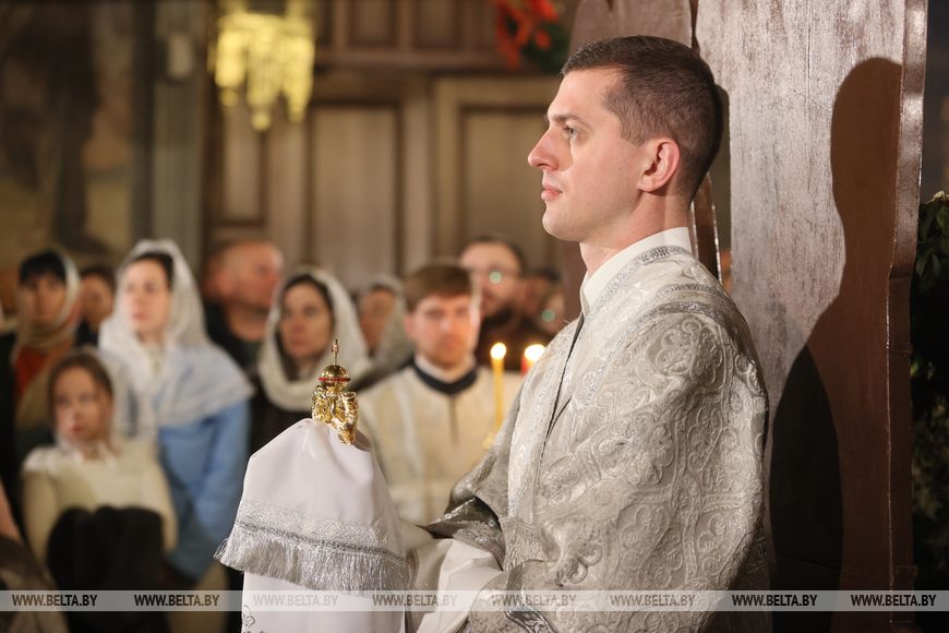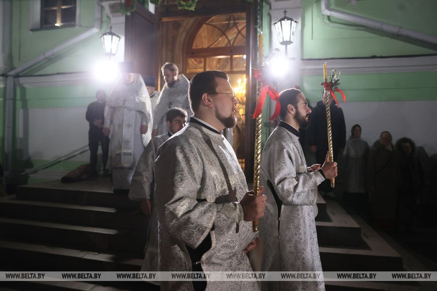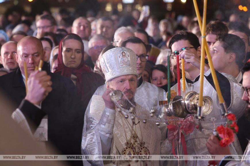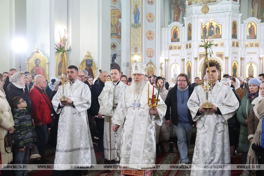 Пасхальное богослужение прошло в Свято-Духовом кафедральном соборе Минска в ночь с Великой субботы на светлое Христово Воскресение. Торжественное богослужение возглавлял Митрополит Минский и Заславский Вениамин, Патриарший Экзарх всея Беларуси.