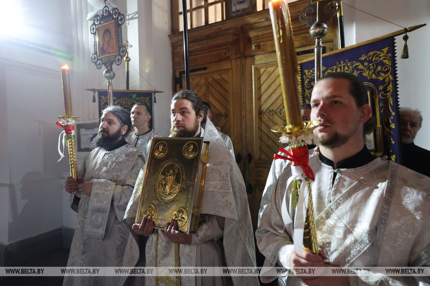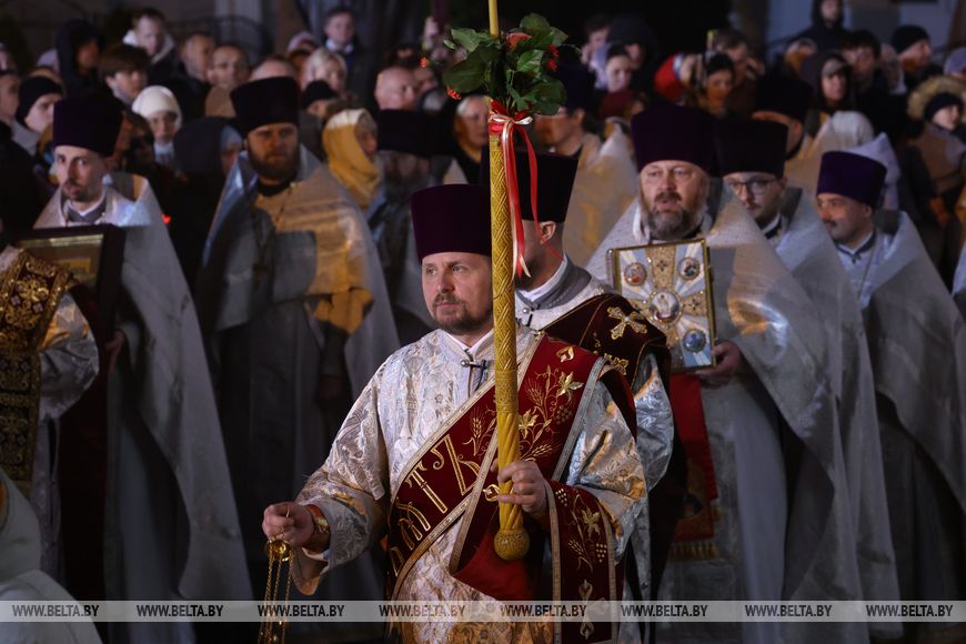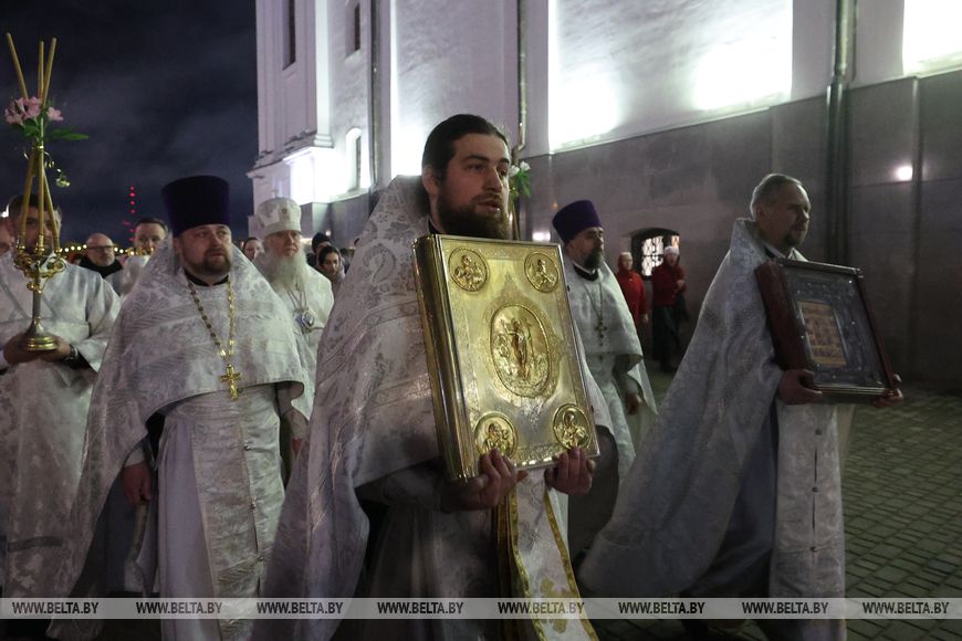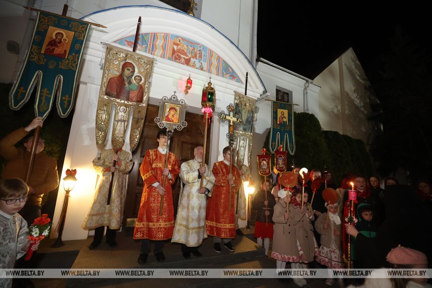 В Пасхальную ночь с 11 на 12 апреля архиепископ Витебский и Оршанский Димитрий совершил крестный ход, Пасхальную Заутреню и Божественную литургию в Свято-Успенском кафедральном соборе Витебска.