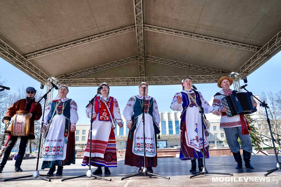 Образцовый фольклорный коллектив «Валошкі» и народный семейный обрядово-игровой коллектив «Радзіна» с национальным колоритом приветствовали гостей на открытой площадке у Могилевского областного методического центра народного творчества и культурно-просветительской работы.
