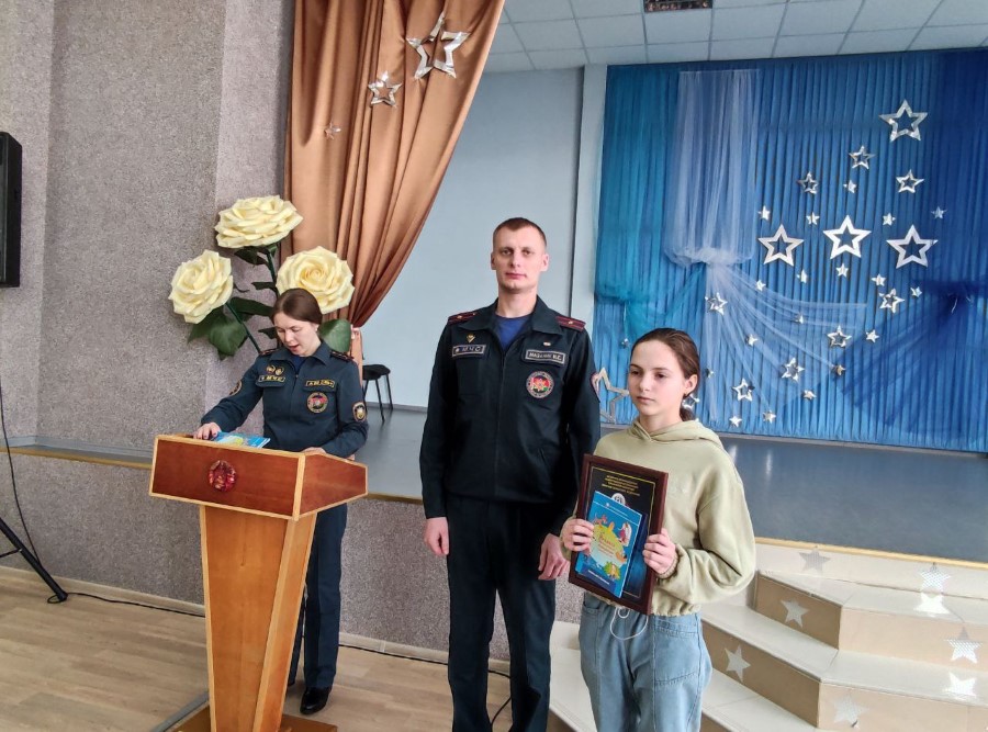 Поблагодарили ребят за участие в конкурсе, поздравили с победой начальник Березинского РОЧС Иван Мазаник, инспектор пропаганды Ольга Ермакова, первый секретарь РК БРСМ Екатерина Аврамчик и главный редактор районной газеты Юлия Букель.