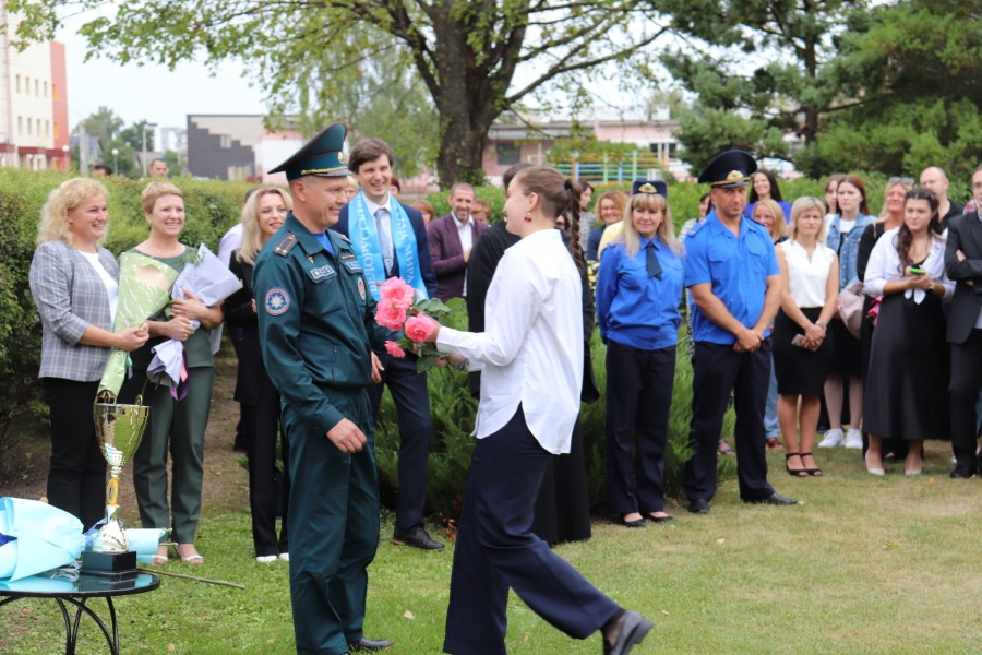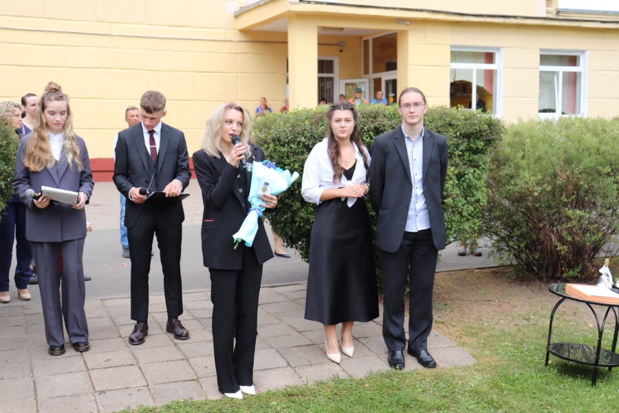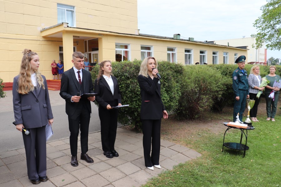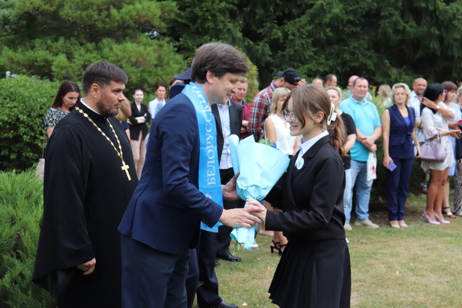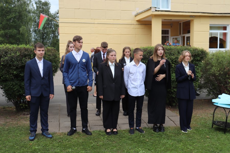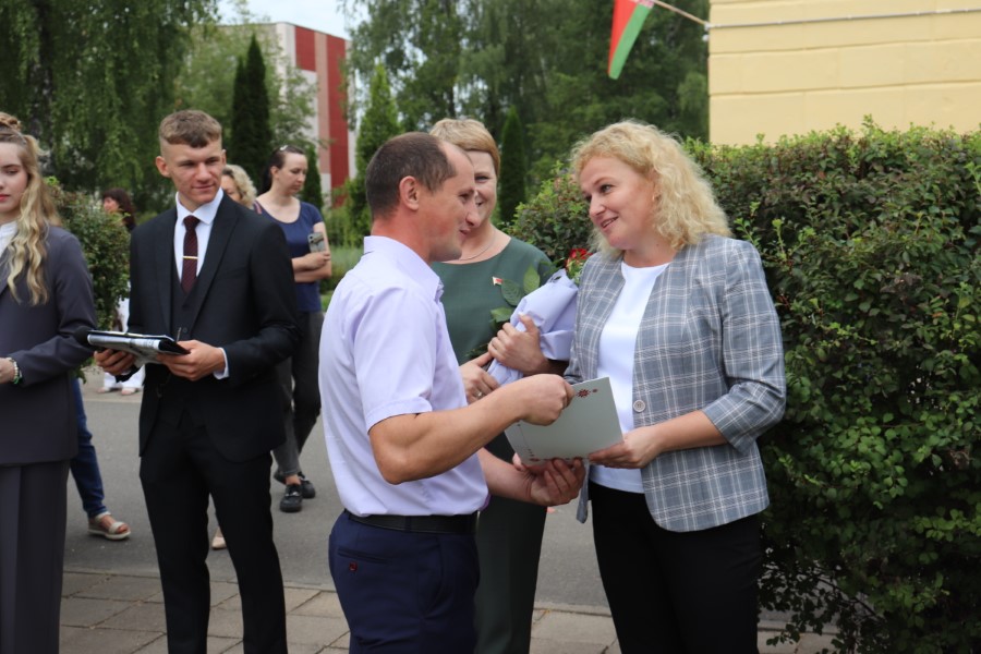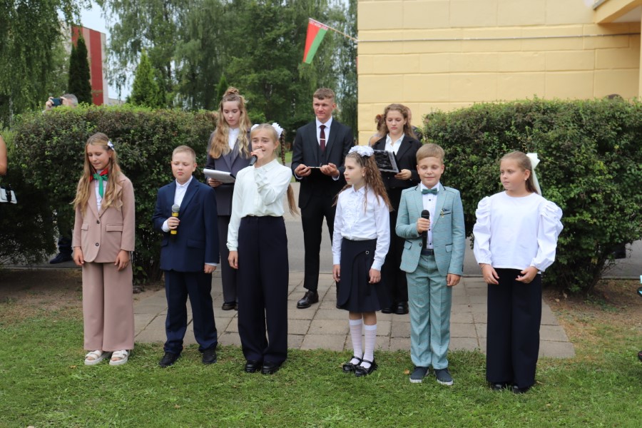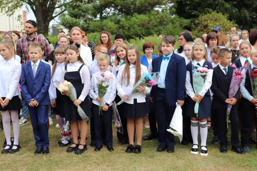 В торжественной линейке, посвященной Дню знаний, приняли участие почётные гости - заместитель председателя Минского областного отделения Белорусского Фонда мира Павел Негай, начальник отдела организационно-кадровой работы Березинского райисполкома Ольга Мельниченок, главный специалист управления по образованию, спорту и туризму Березинского райисполкома Наталья Синяк, заместитель начальника Березинского РОЧС Александр Лагун, благочинный Березинского церковного округа протоиерей Илья Гончарук.