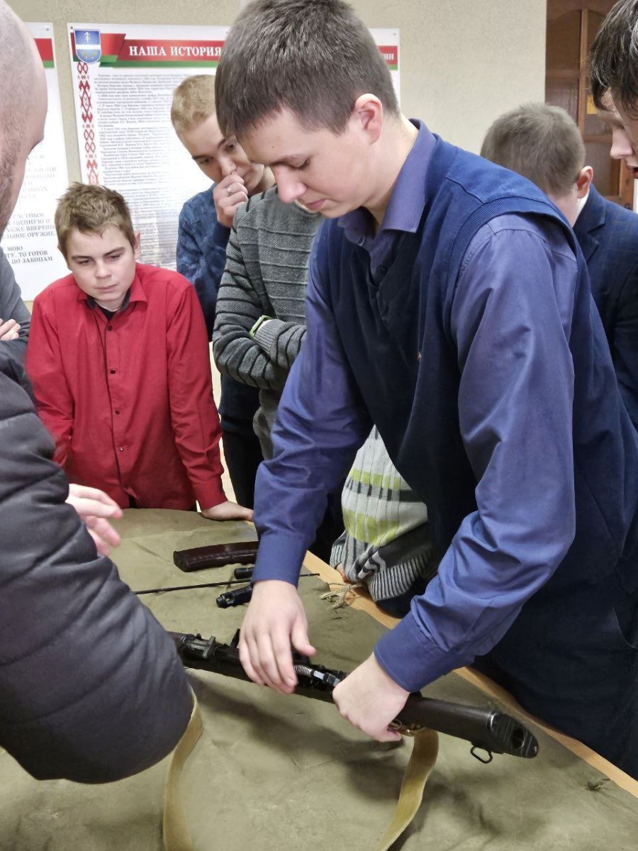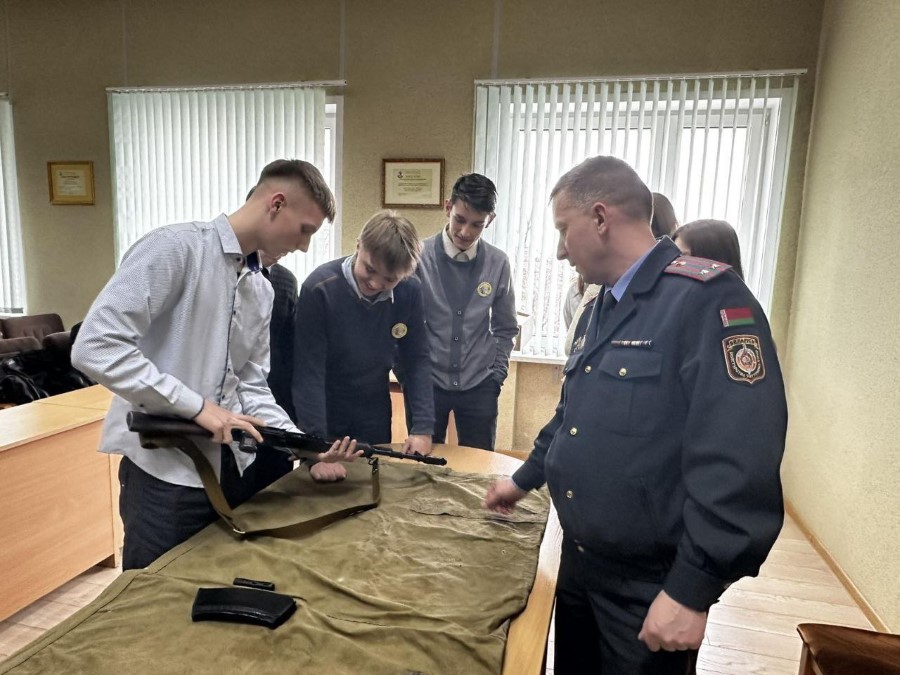 После беседы милиционер познакомил гостей с образцами оружия и экипировки, которые сейчас находятся на вооружении правоохранителей.