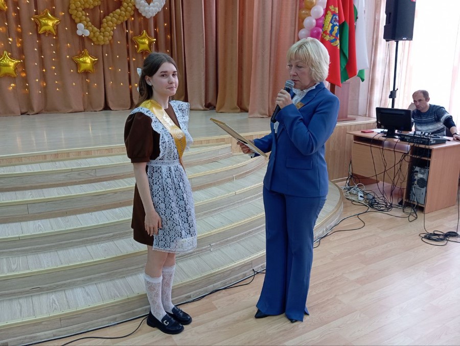 Светлана Абрамович вручила Почётную грамоту за отличную учёбу и примерное поведение Анастасии Ермаковой.