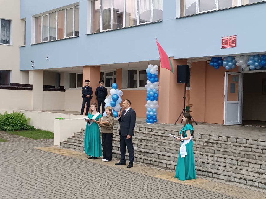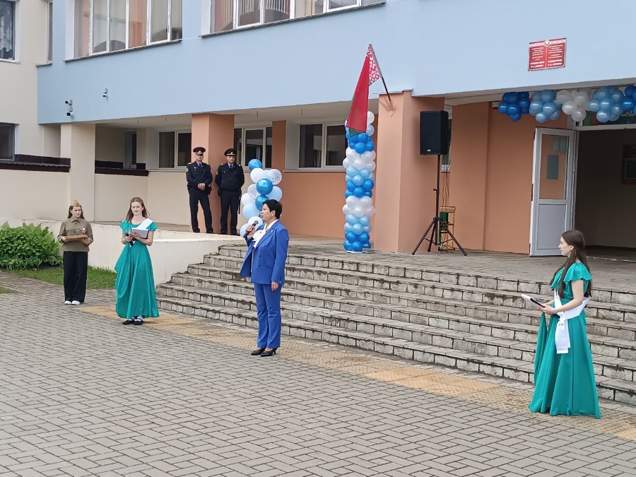 В начале мероприятия члены ВПК «Беркут» вынесли государственный флаг Беларуси. Учеников поздравила директор школы Алла Дудко. Она обозначила, что впереди выпускников ждут экзамены, а главное жизненный выбор, который определит траекторию всего их будущего. Директор пожелала всем ученикам удачи, хорошего настроения и смелости.