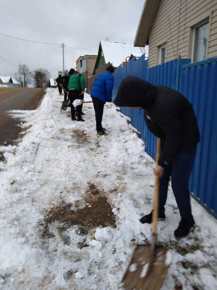 С началом обильных снегопадов не остались без внимания пожилые жители города, к ним на помощь с очисткой снега спешит молодежь, члены БРСМ. Вот и вчера ученики средней школы №2, активисты БРСМ, пришли к жительнице города, ветерану Великой Отечественной войны Софии Стасевич и убрали снег во дворе дома.