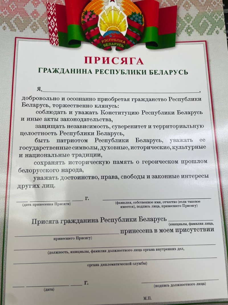 Согласно Указу Президента Республики Беларусь с 11 июля прошлого года вступил в силу обновленный Закон «О гражданстве Республики Беларусь». В процедуру получения белорусского гражданства внесены такие новации, как принятие присяги гражданина Республики Беларусь и сдача тестирования на знание одного из государственных языков.