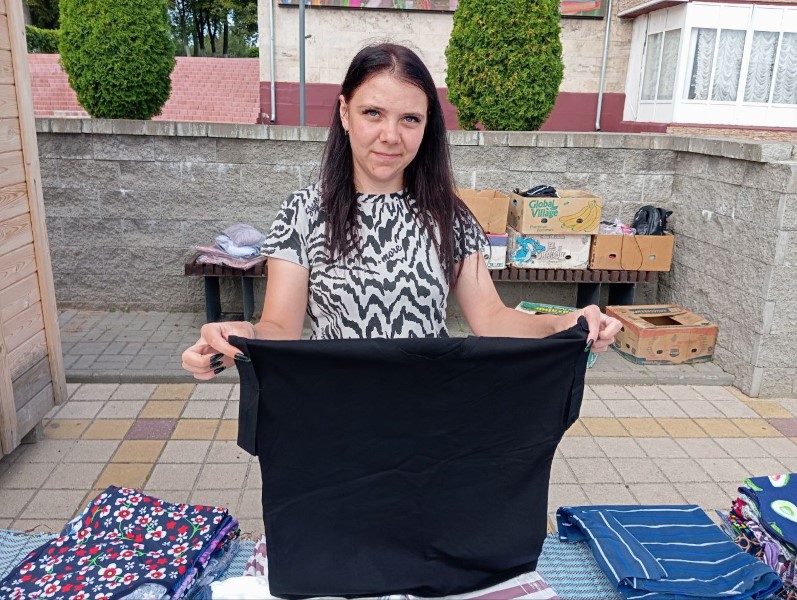 Что касается детской спортивной формы, её можно было найти на прилавке ИП Аникеевой из Осипович. Спортивные костюмы для подростков здесь были по 50 рублей.