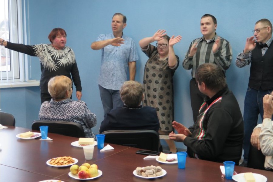 Молодым инвалидам аккомпанировала руководитель кружка Тамара Демешкевич. Ребята исполнили лирические песни.