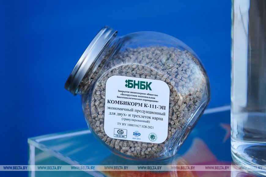 Президенту доложили, что Белорусской национальной биотехнологической корпорацией разработан отечественный корм для промышленного выращивания рыбы необходимых характеристик, он долго остается на поверхности воды и полностью поглощается рыбой.