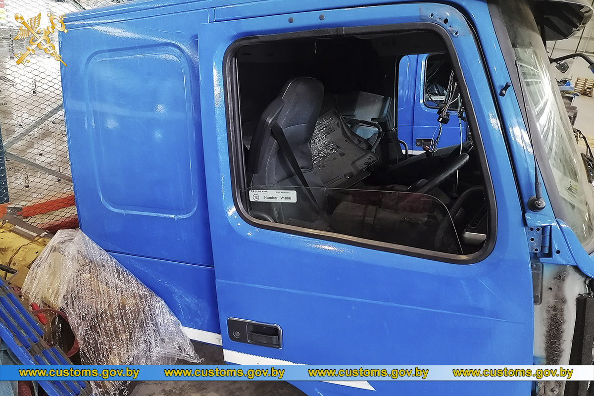 Что на самом деле находится в грузовике, таможенники установили во время досмотра: это кабина автомобиля, шасси со всеми необходимыми комплектующими (двигатель, коробка передач и другое), которые фактически являются грузовым автомобилем VOLVO в разобранном виде, аккуратно распиленным на две части.