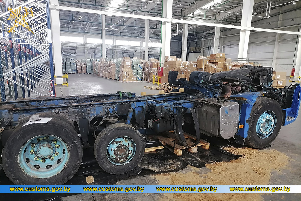 А минскими таможенниками в пункте таможенного оформления «Великий Камень» пресечен факт незаконного перемещения из Литвы грузового автомобиля VOLVO, распиленного на две части.