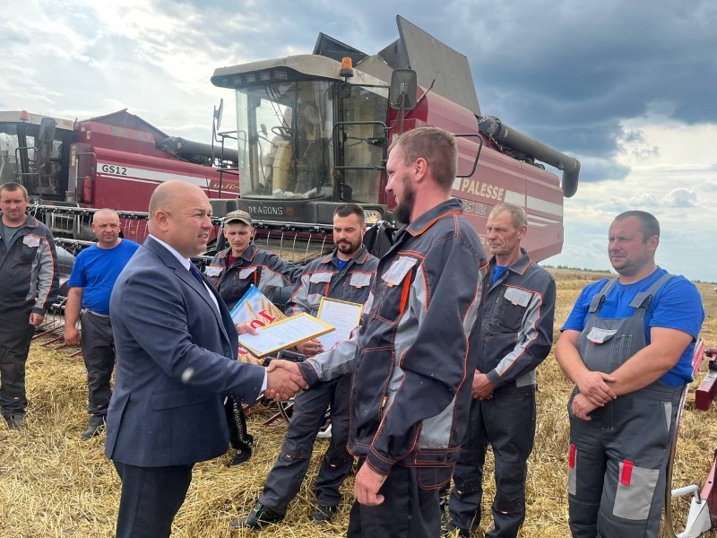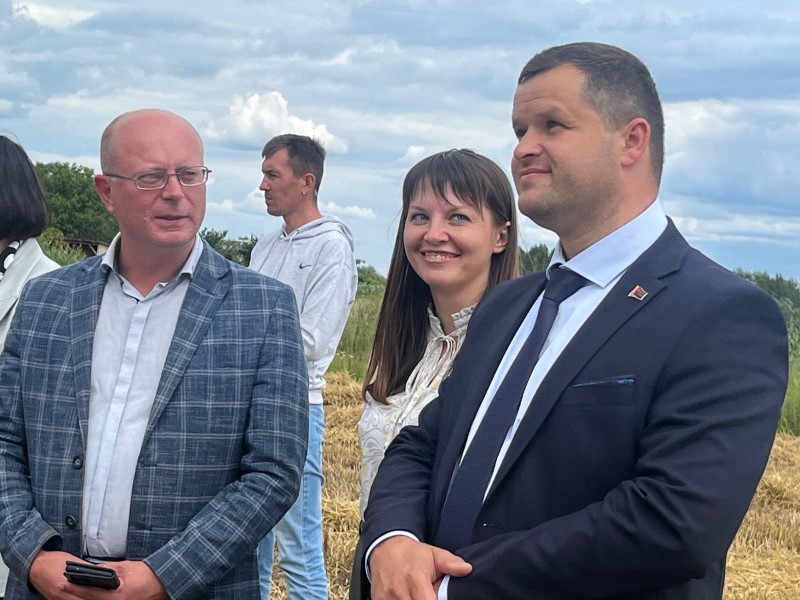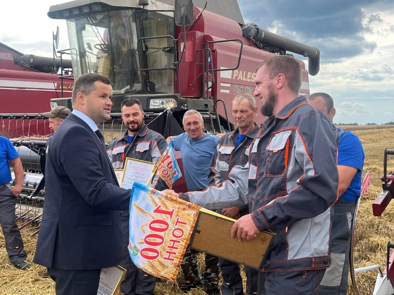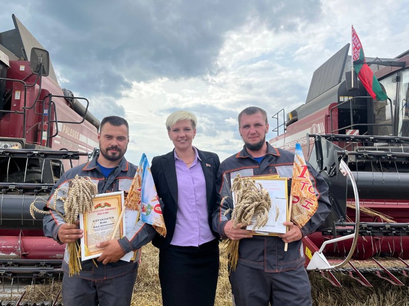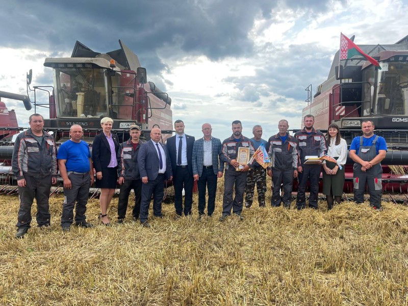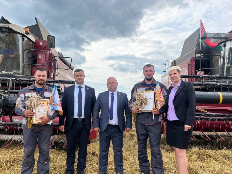 Сегодня передовиков жатвы на поле чествовали председатель районного исполнительного комитета Андрей Соколовский, первый заместитель Александр Крук, председатель профсоюза работников АПК Екатерина Аврамчик, от ОАО «Бродец» поздравил Павел Сугако.