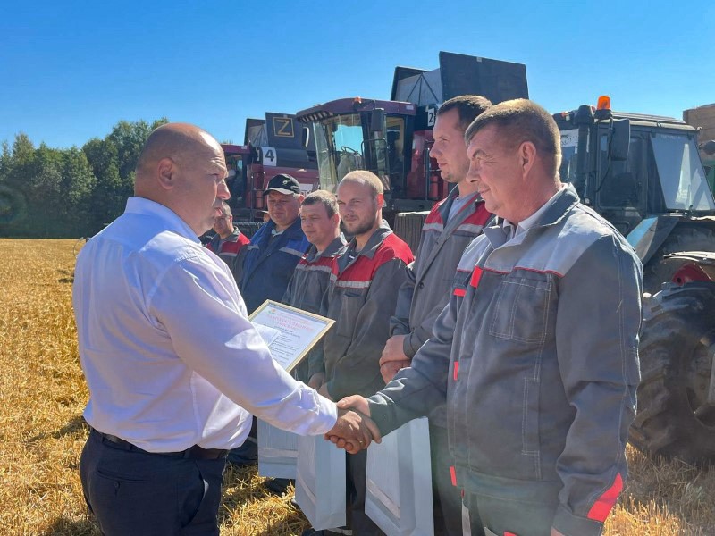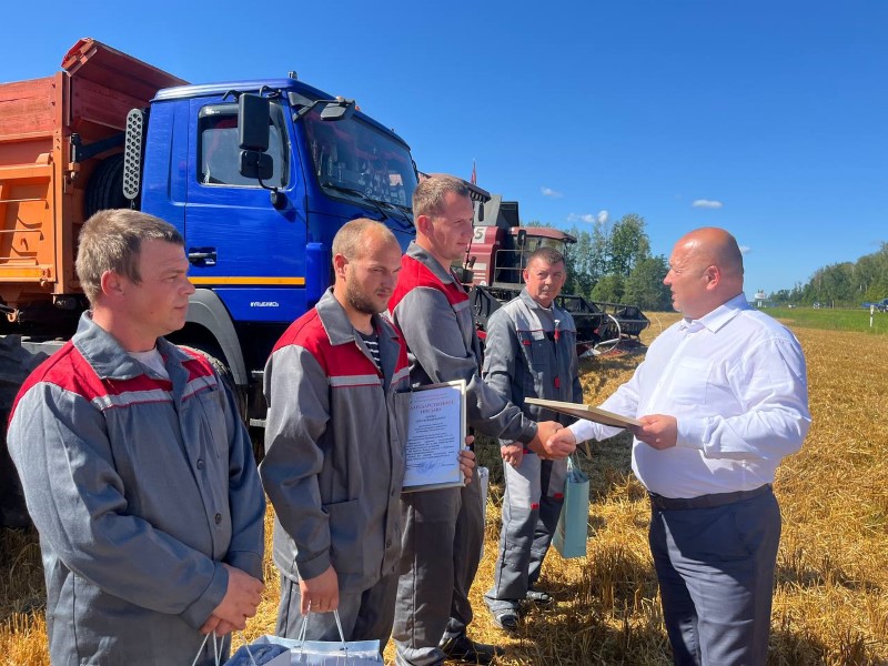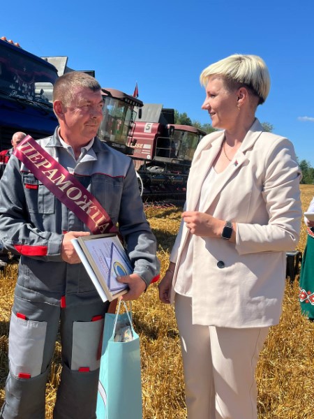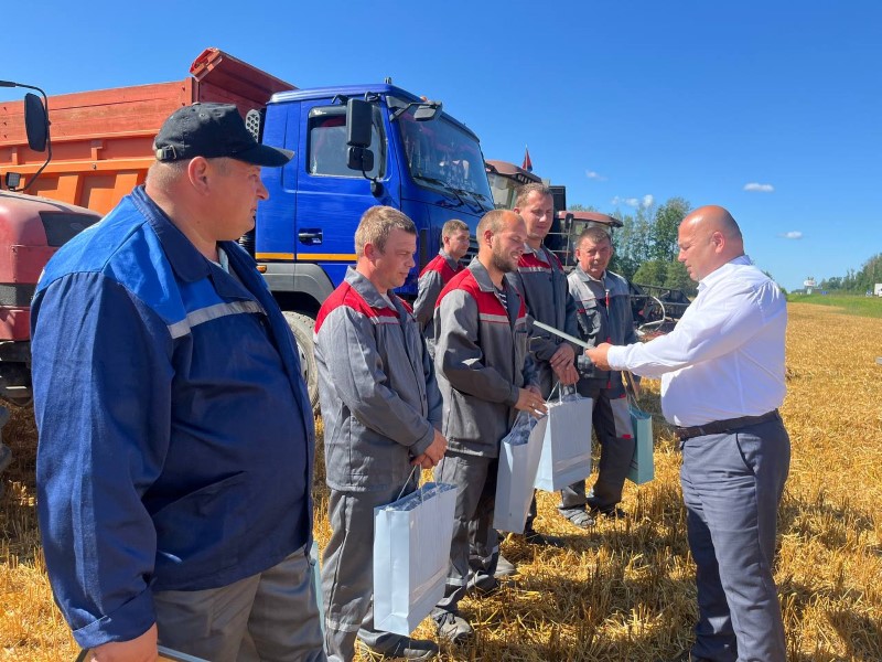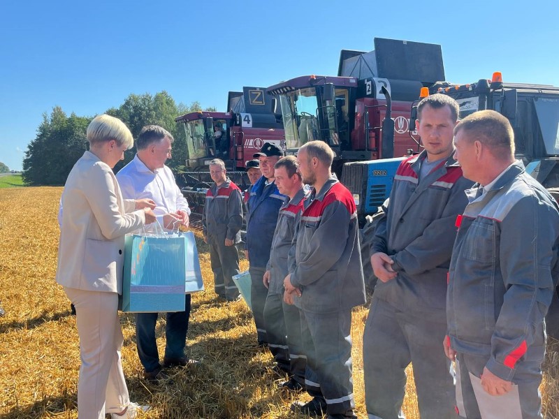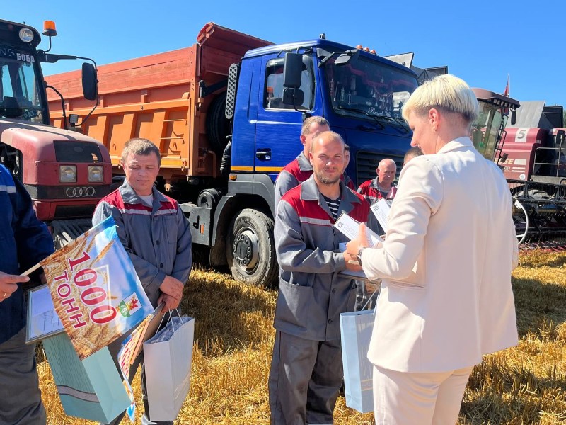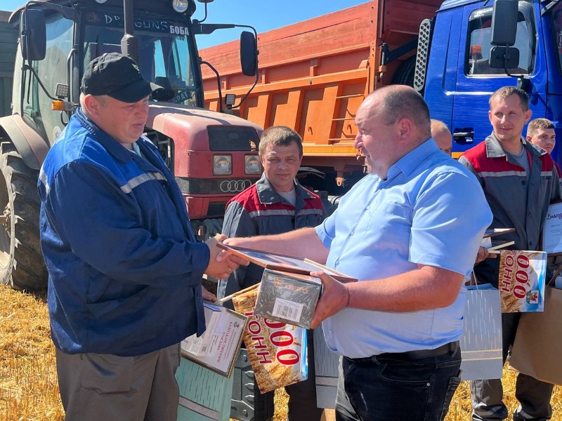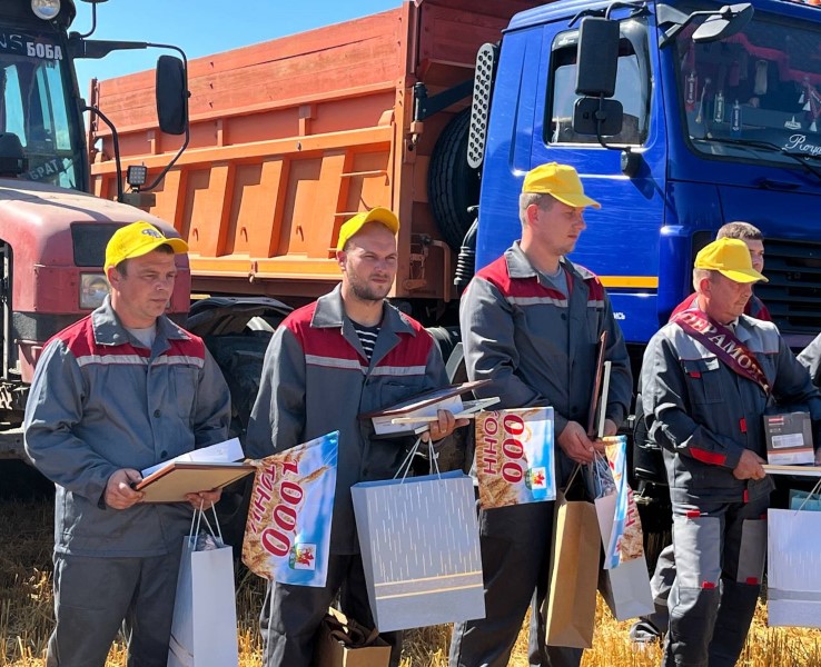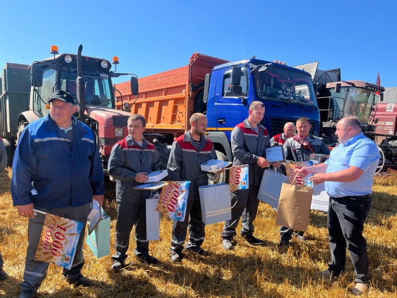Поздравляли и тысячников комбайновый экипаж СУП «Здравушка-Агро» в составе Сергея Бурого и Дмитрия Лаппо, Горошко Александра и Пенрата Александра.