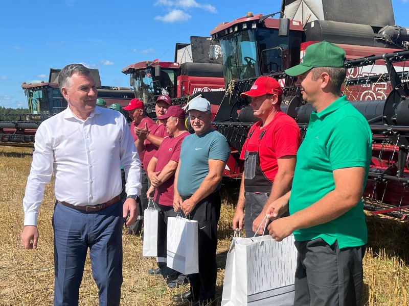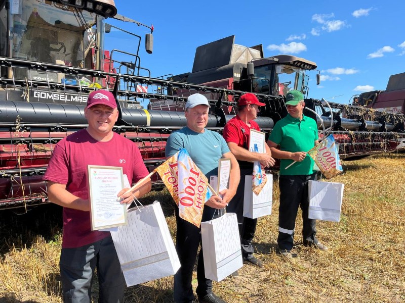 Поздравили хлеборобов начальник главного финансового управления Миноблисполкома Николай Куховец, председатель районного исполнительного комитета Андрей Соколовский, первый заместитель Александр Крук, председатель профсоюза работников АПК Екатерина Аврамчик, директор СУП «АгроМАЗ» Анатолий Дроздов.