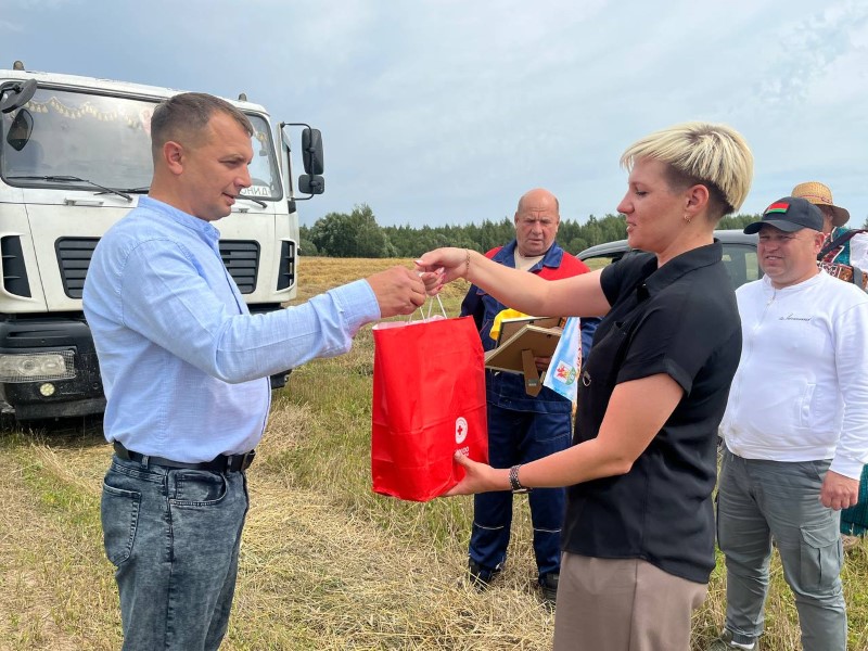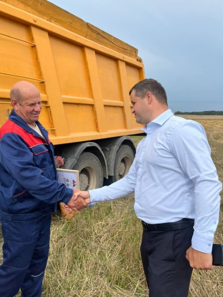 Продолжается награждение лучших на жатве прямо в поле...