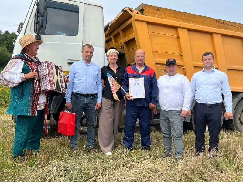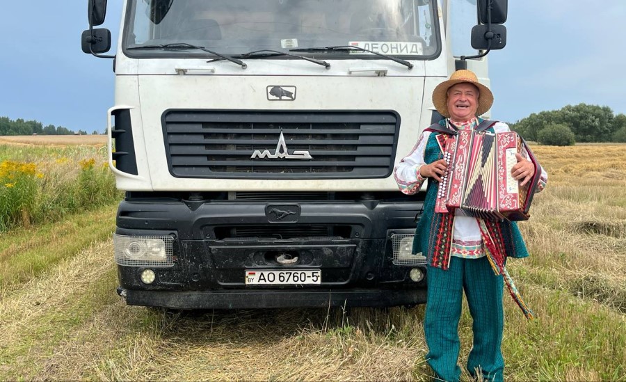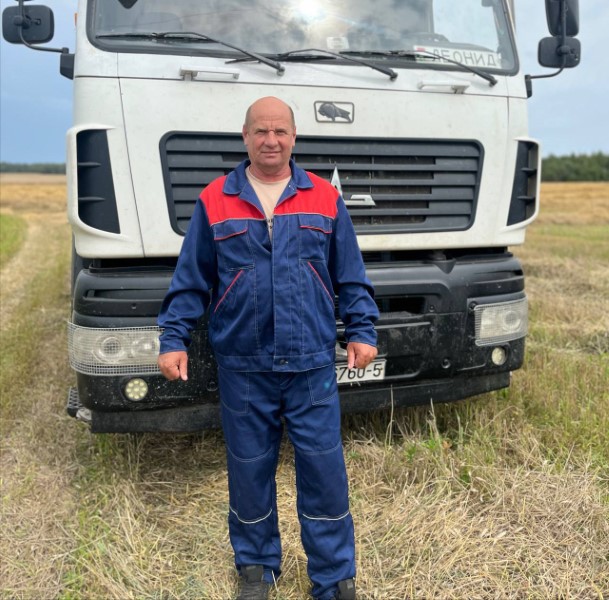 Следующий адрес - ОАО "Богушевичи". Здесь, как и каждый год, в числе первых перевез тысячу тонн зерна водитель Леонид АНТОНЕВИЧ.