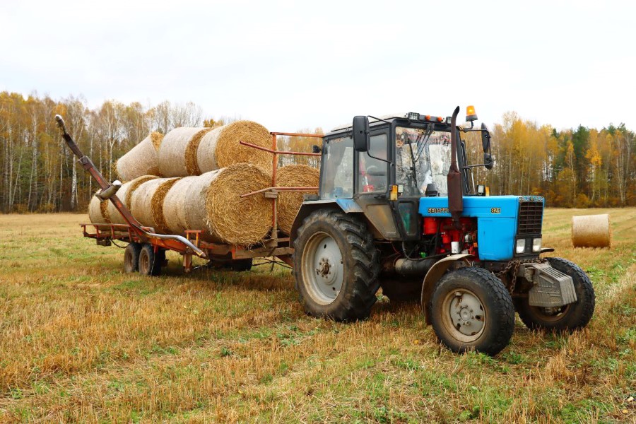 На полях, неподалеку от д. Дулебы отвозкой соломы занят Станислав Цедрик.